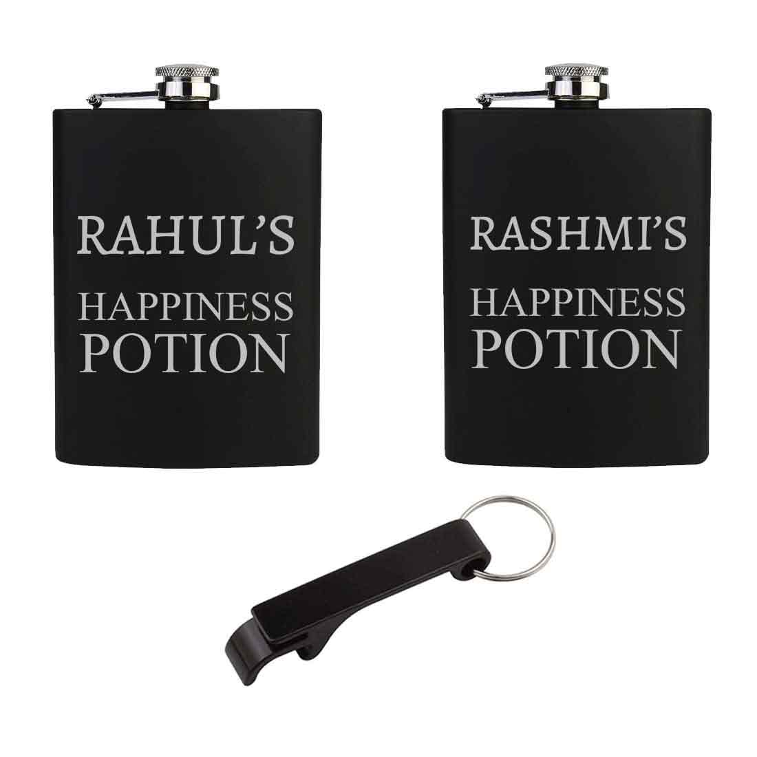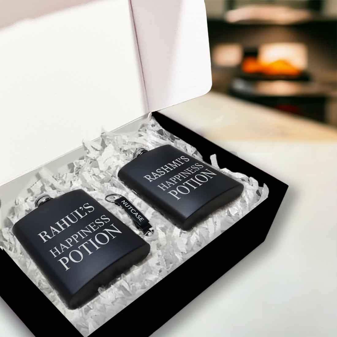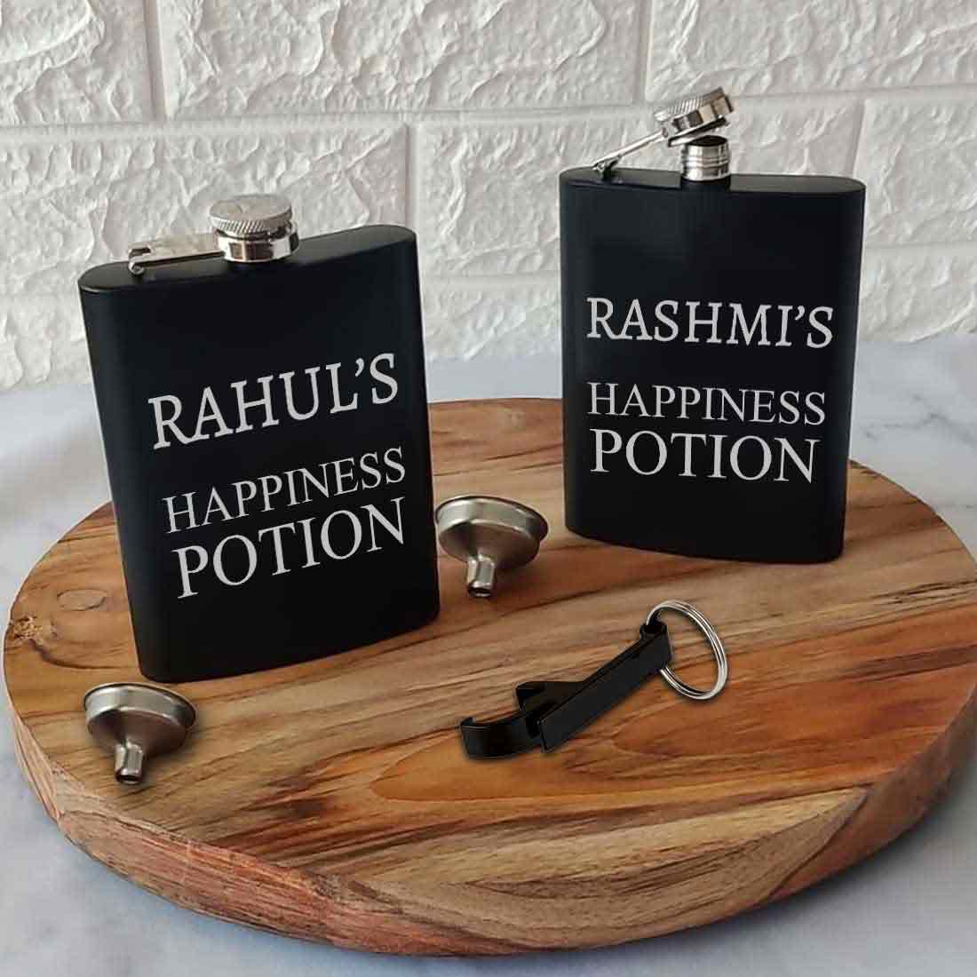Customized Hip Flask Set of 2 with Opener Stainless Steel Gift Box for Couple