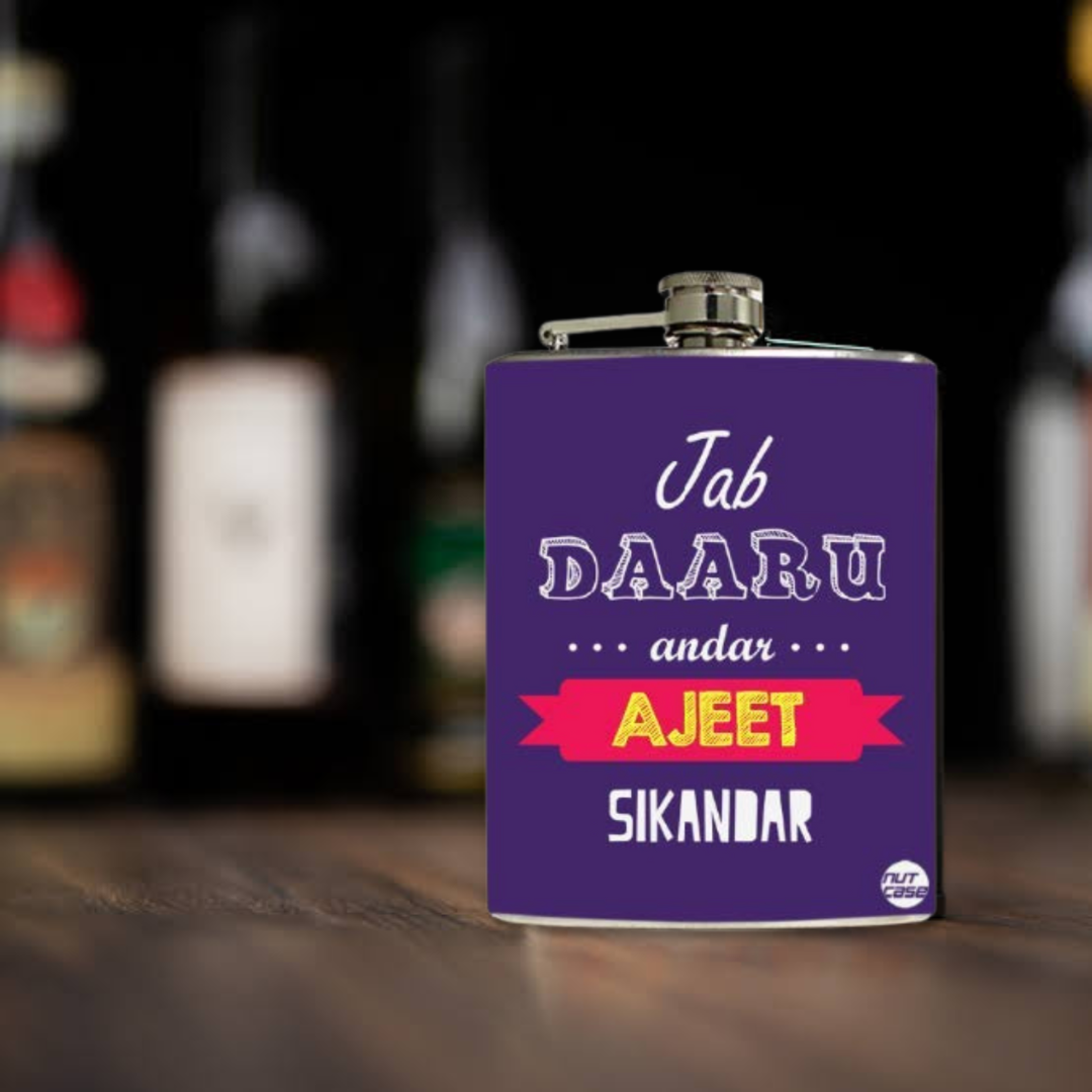 Customized Cool Hip Flask - Fun Unique Gift - Daaru Andar
