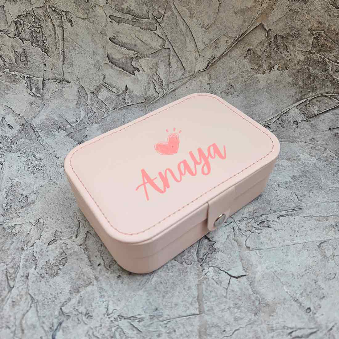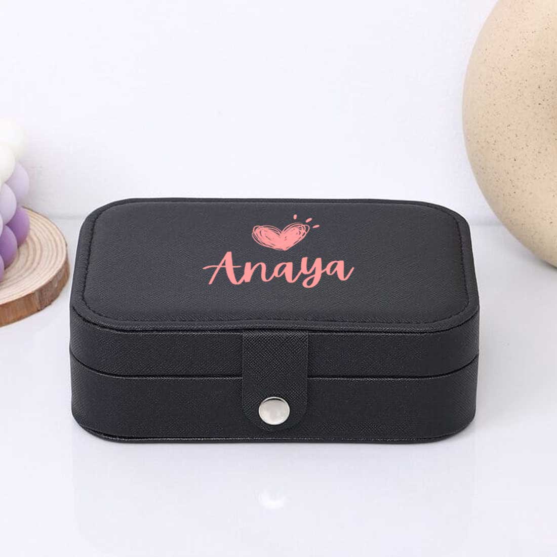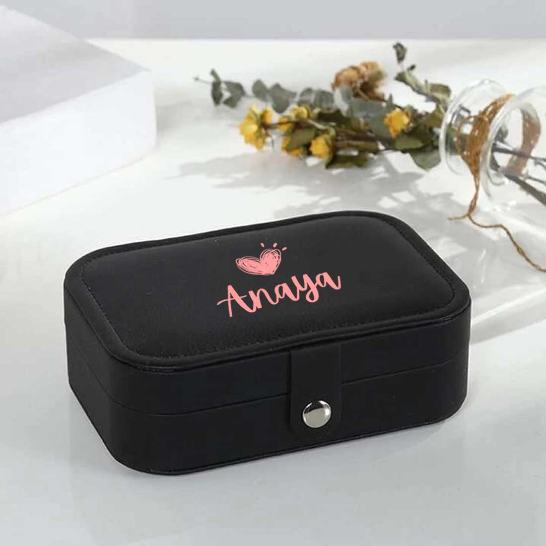 Introducing the Customized Jewellery Storage Pouch for Girls custom made with luxurious PU canvas leather. This stylish box is perfect for storing your precious accessories. Personalize it with a heart and "Your Name" to add a touch of elegance. Surprise your girlfriend this Valentine's Day with this thoughtful and practical gift.