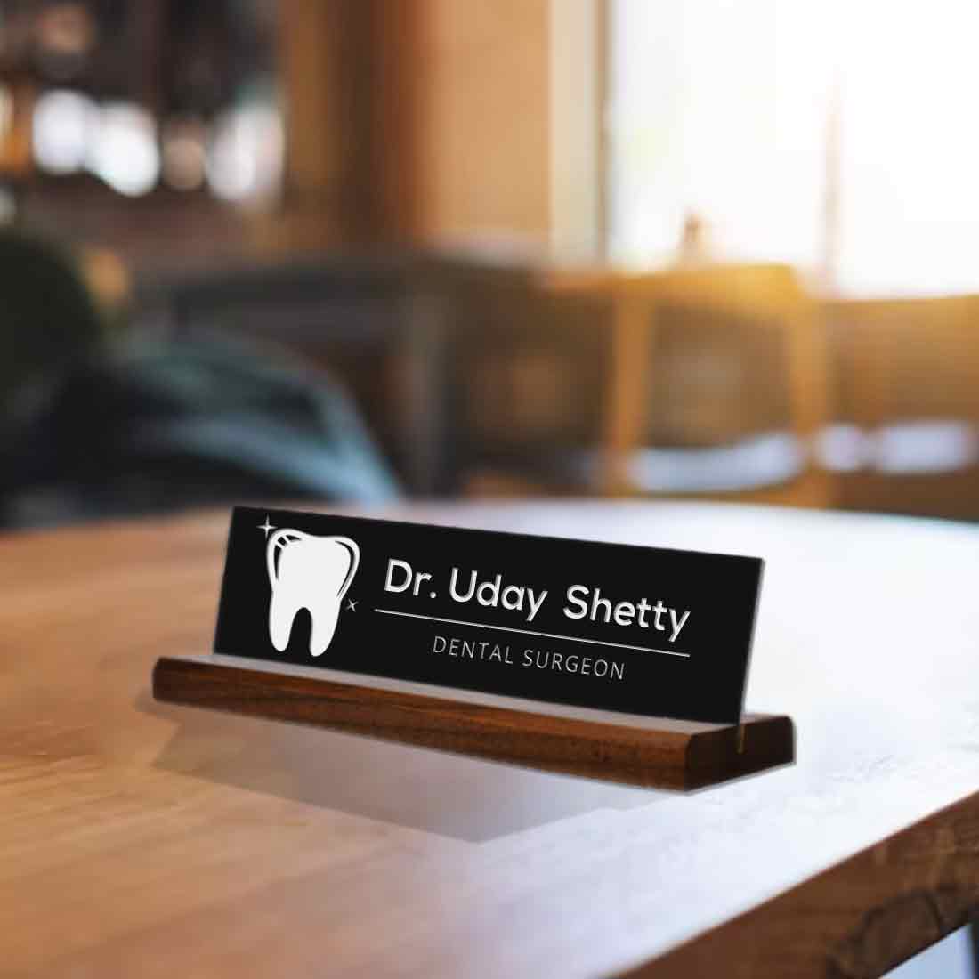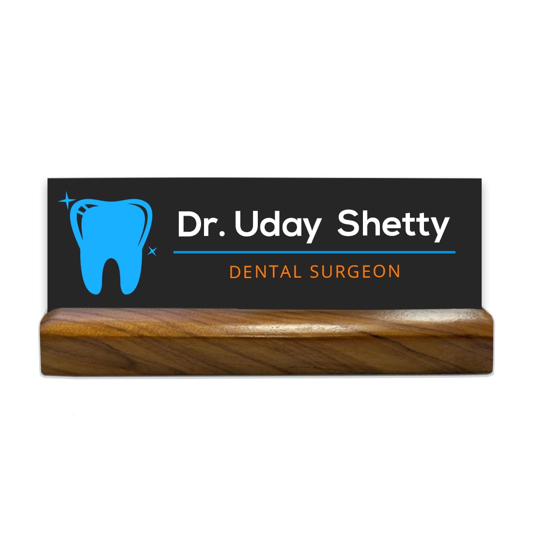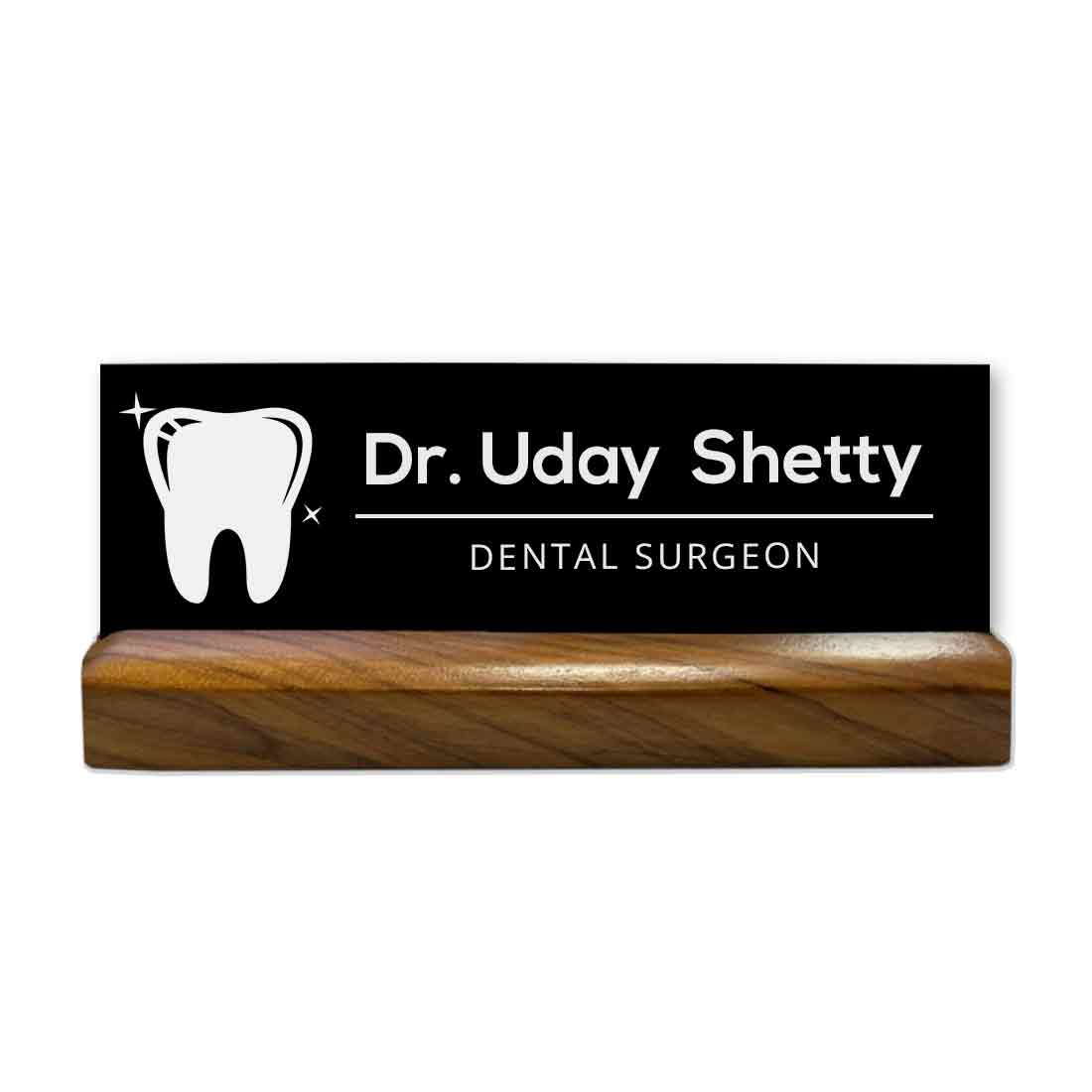 Nutcase brings to you Dentist Desk Name Plate with real wood base. Add a touch of class to your desk with Nutcase name plaque for table. Select from a wide range of design options, add your logo, name, designation and your elegant name plate for desk will be delivered to your doorstep.