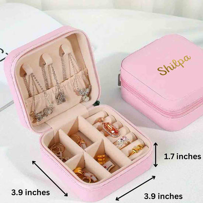 Introducing the Mini Jewelry Organizer box made with luxurious PU canvas leather. Available in both pink and black, this stylish box is perfect for storing your precious accessories. Personalize it with golden fonts to add a touch of elegance. Surprise your girlfriend this Valentine's Day with this thoughtful and practical gift.