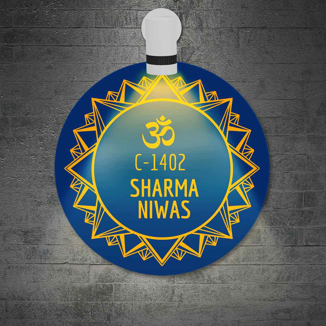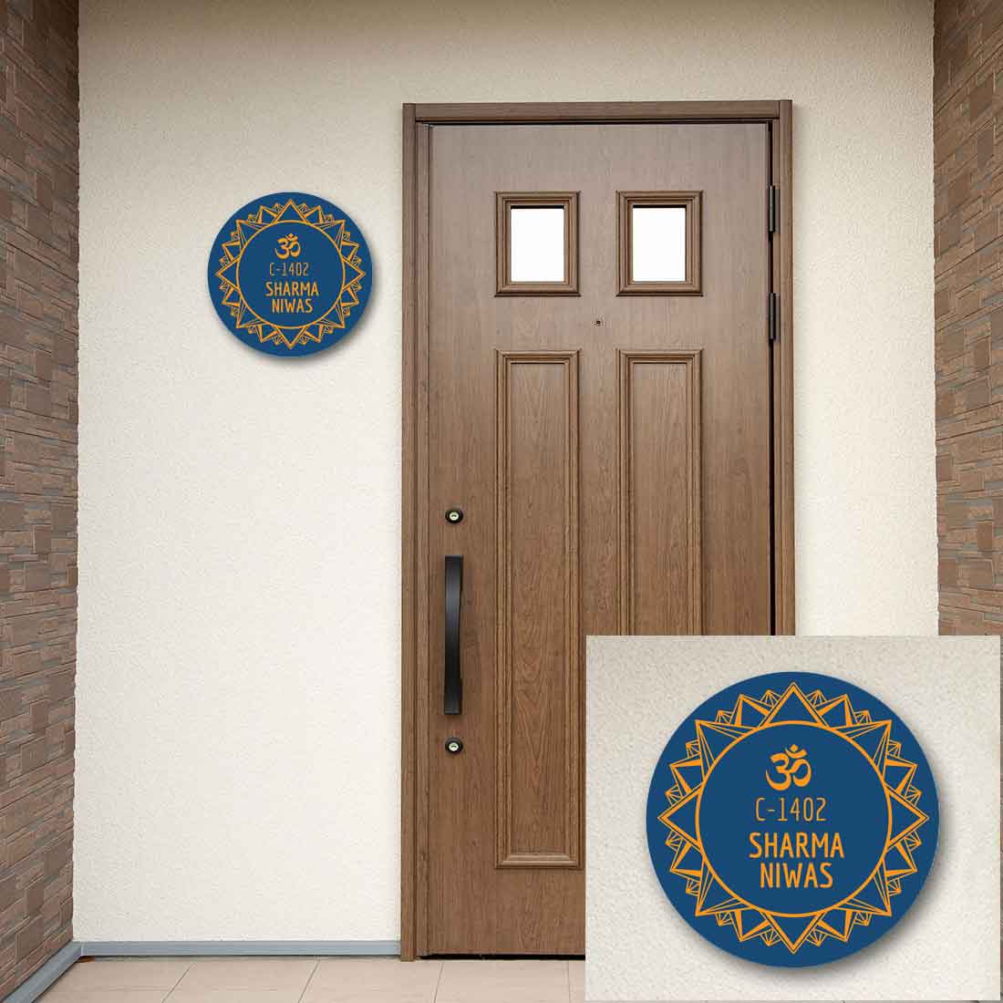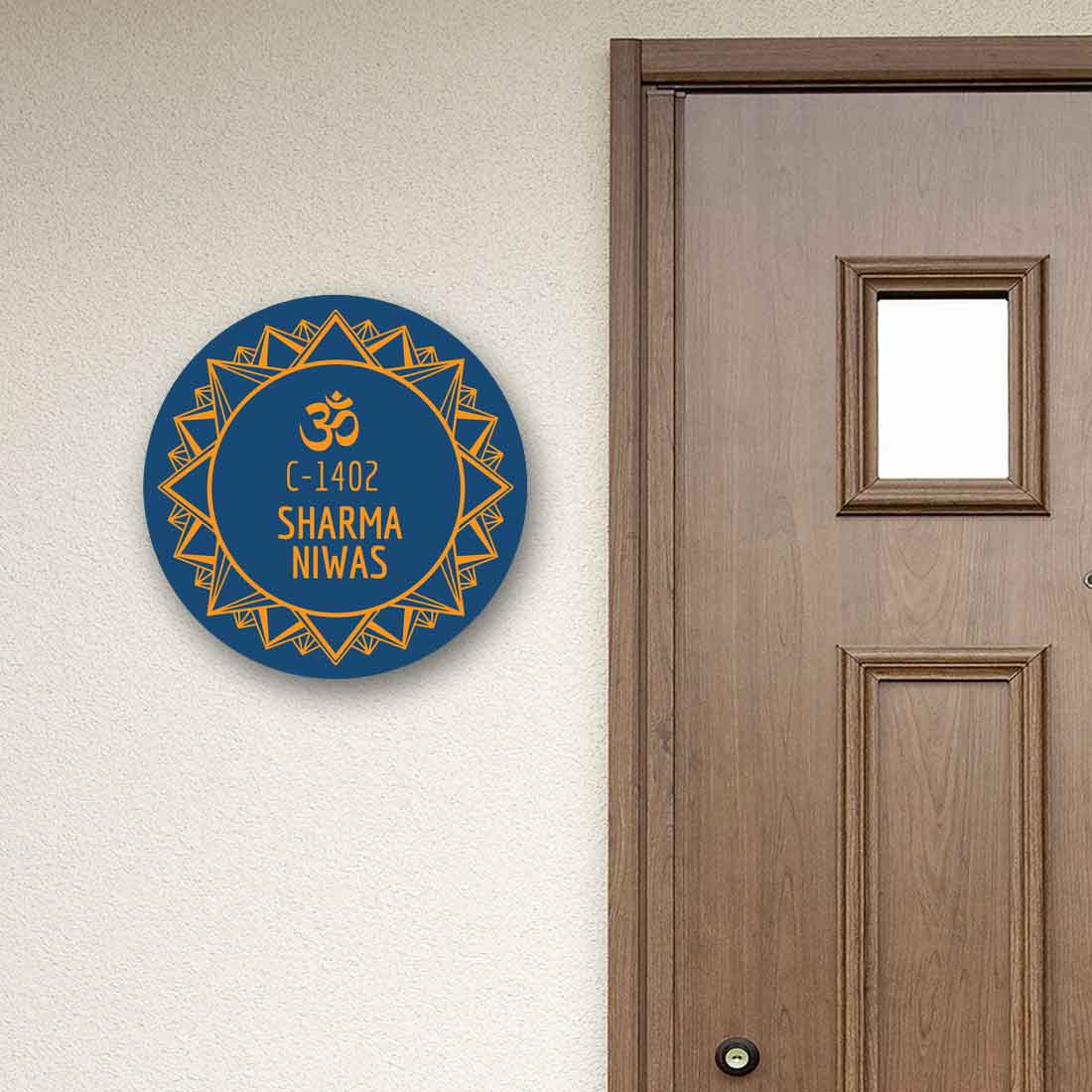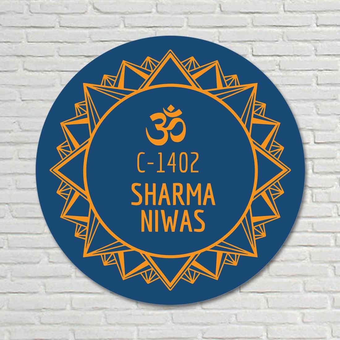 Name Plate Customised for Home Office Bungalows Entrance Round - Spiritual Om