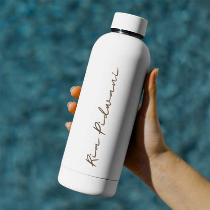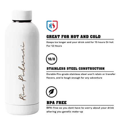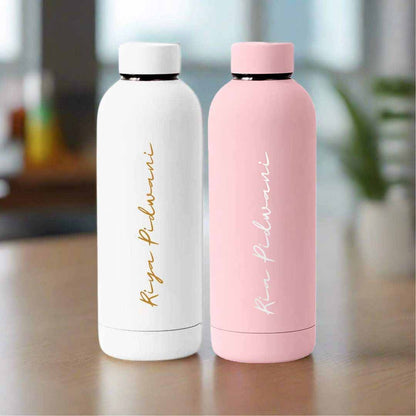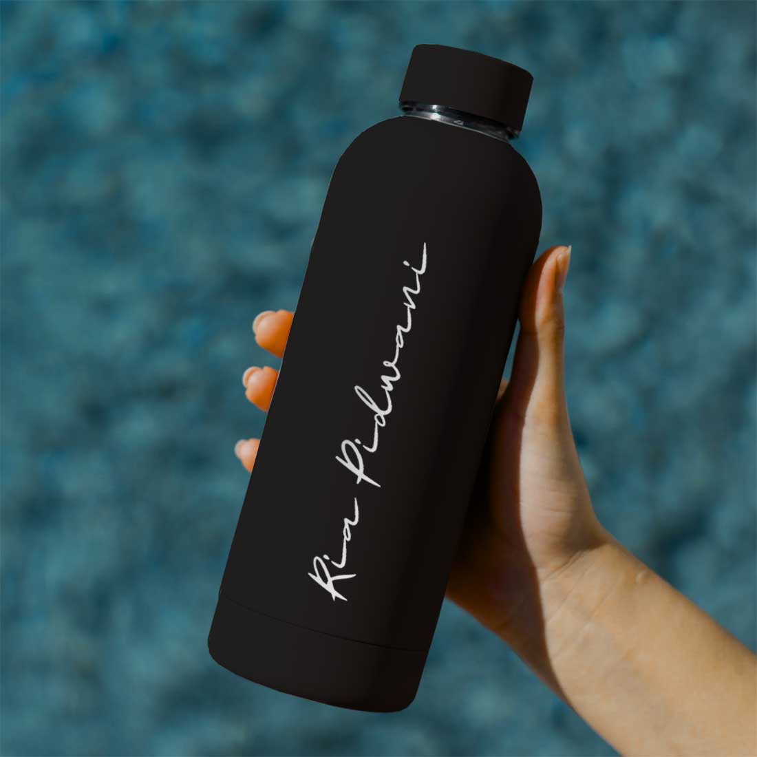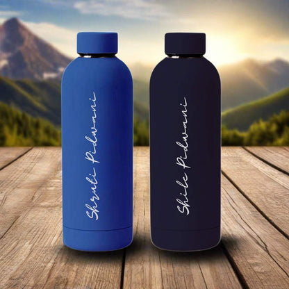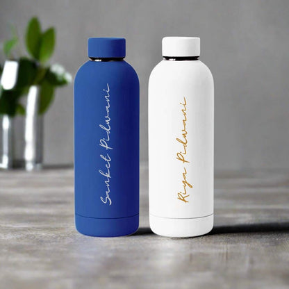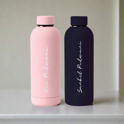 Nutcase Customized Water Bottles with Names are stylish and sturdy with luxuriously soft finish, BPA free, leakproof, double insulated - made with high grade stainless steel. These 500ml double-insulated stainless steel personalized bottles feature a luxurious finish, are BPA-free, leakproof, and designed to keep your beverages hot or cold for extended periods.These 500 ml bottles are perfect for home, office or travel-carry them in your handbag/backpack.