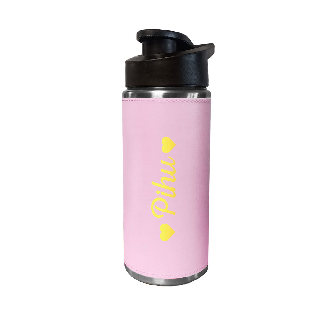 Customized Water Bottles With Names Stainless Steel PU Leather Pink Sipper Bottles For Girls