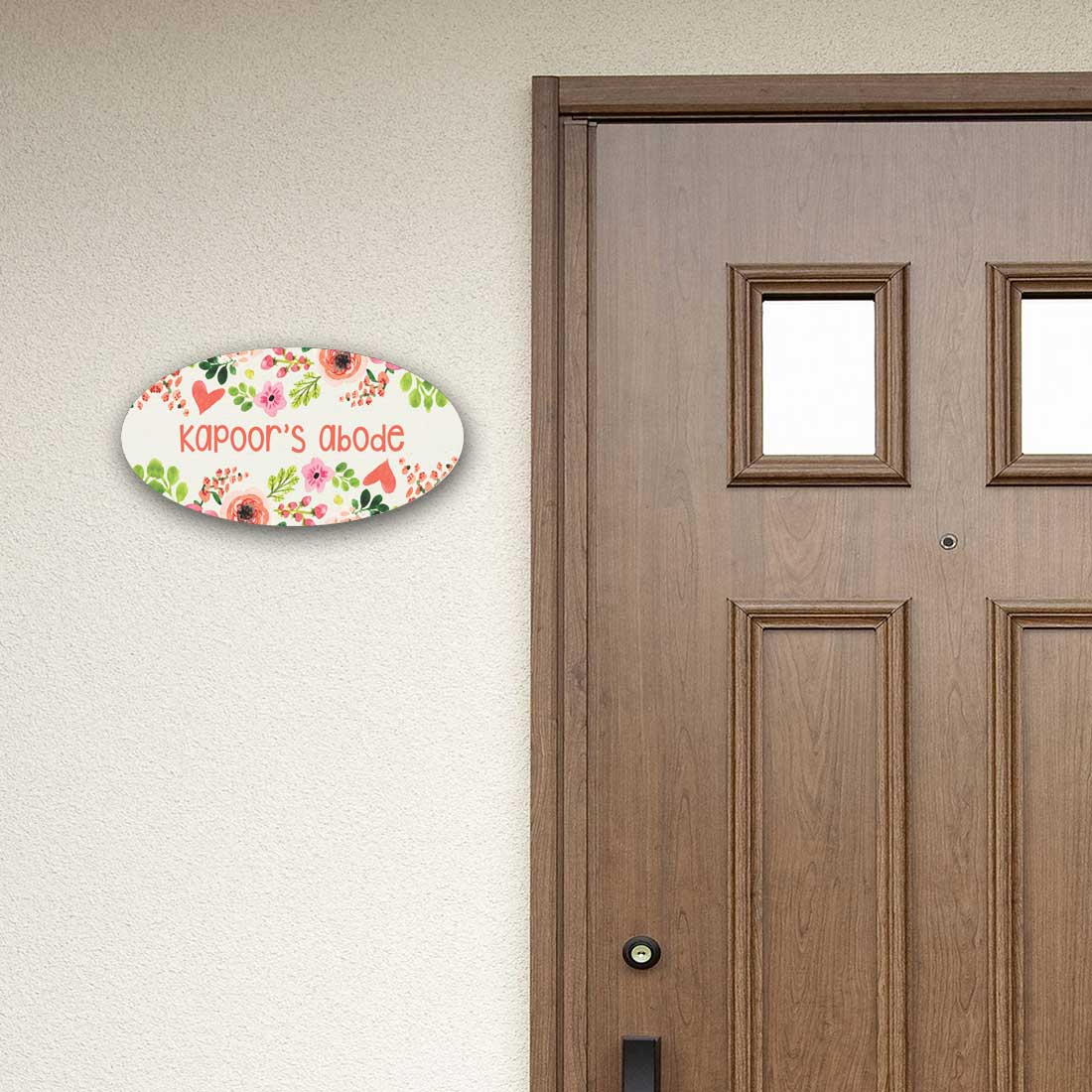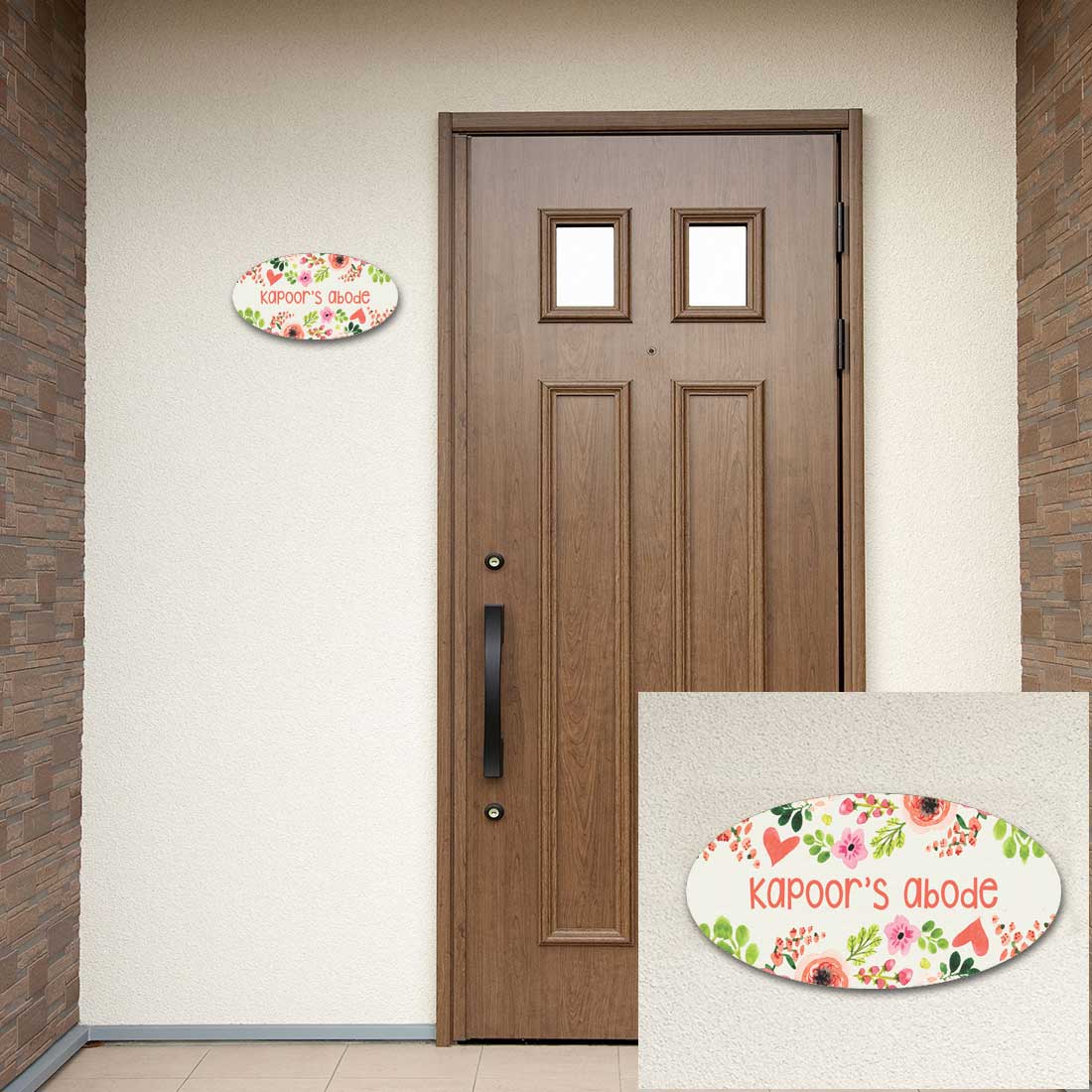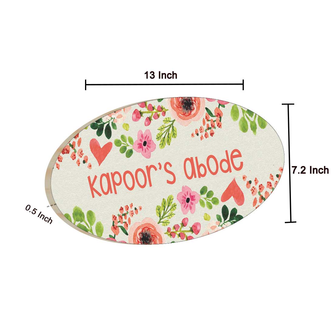Customized Wooden Name Plate for Home Flats and Office - Flowers