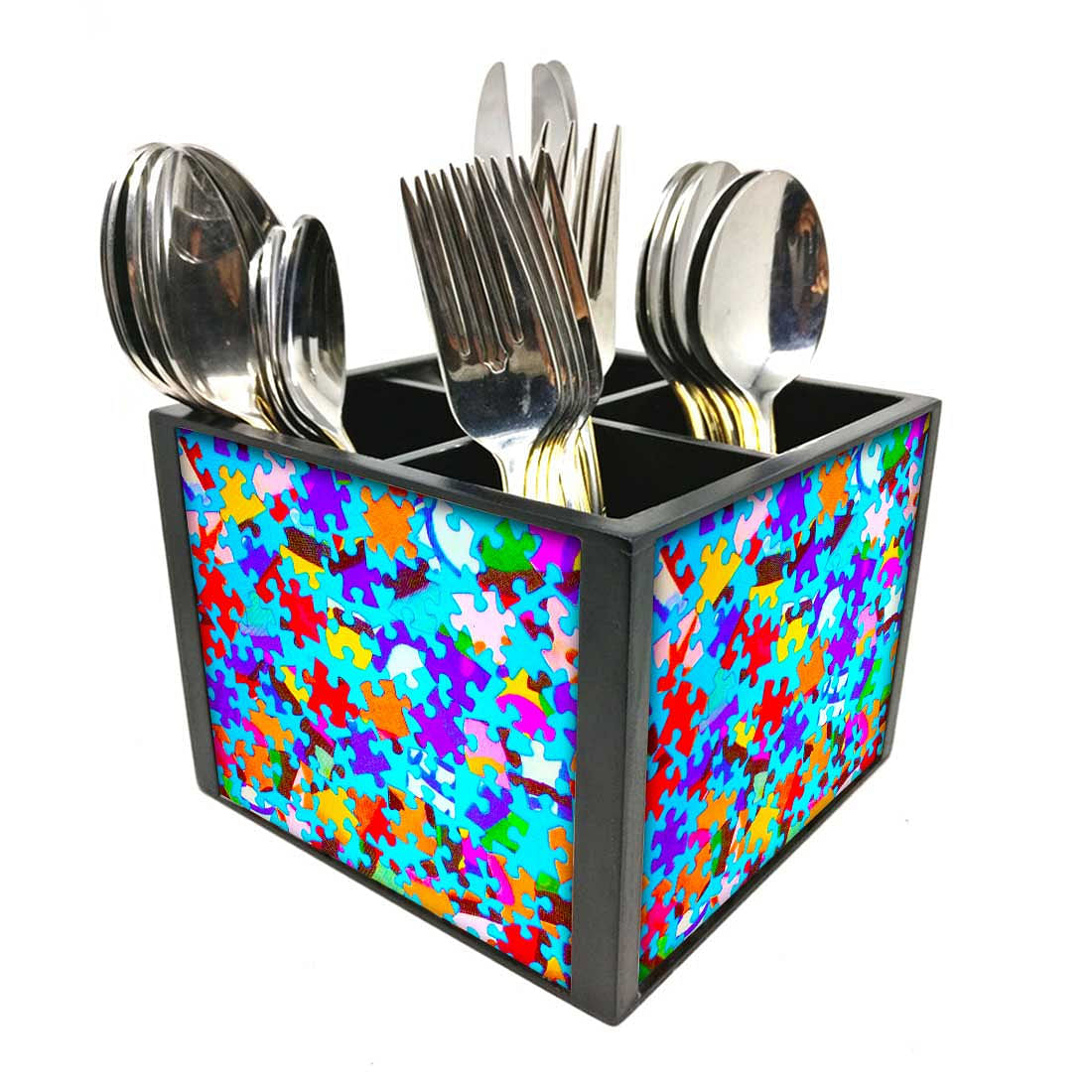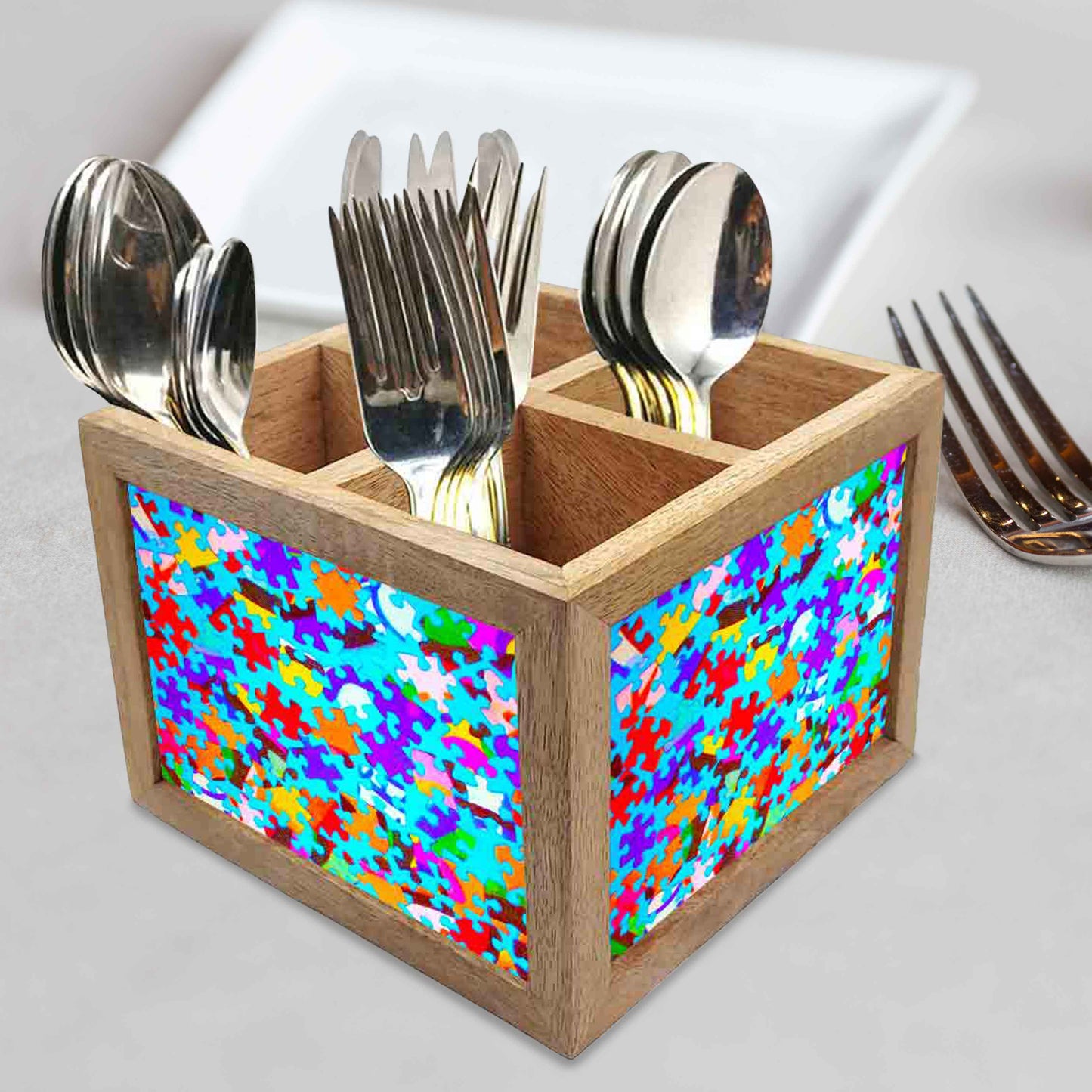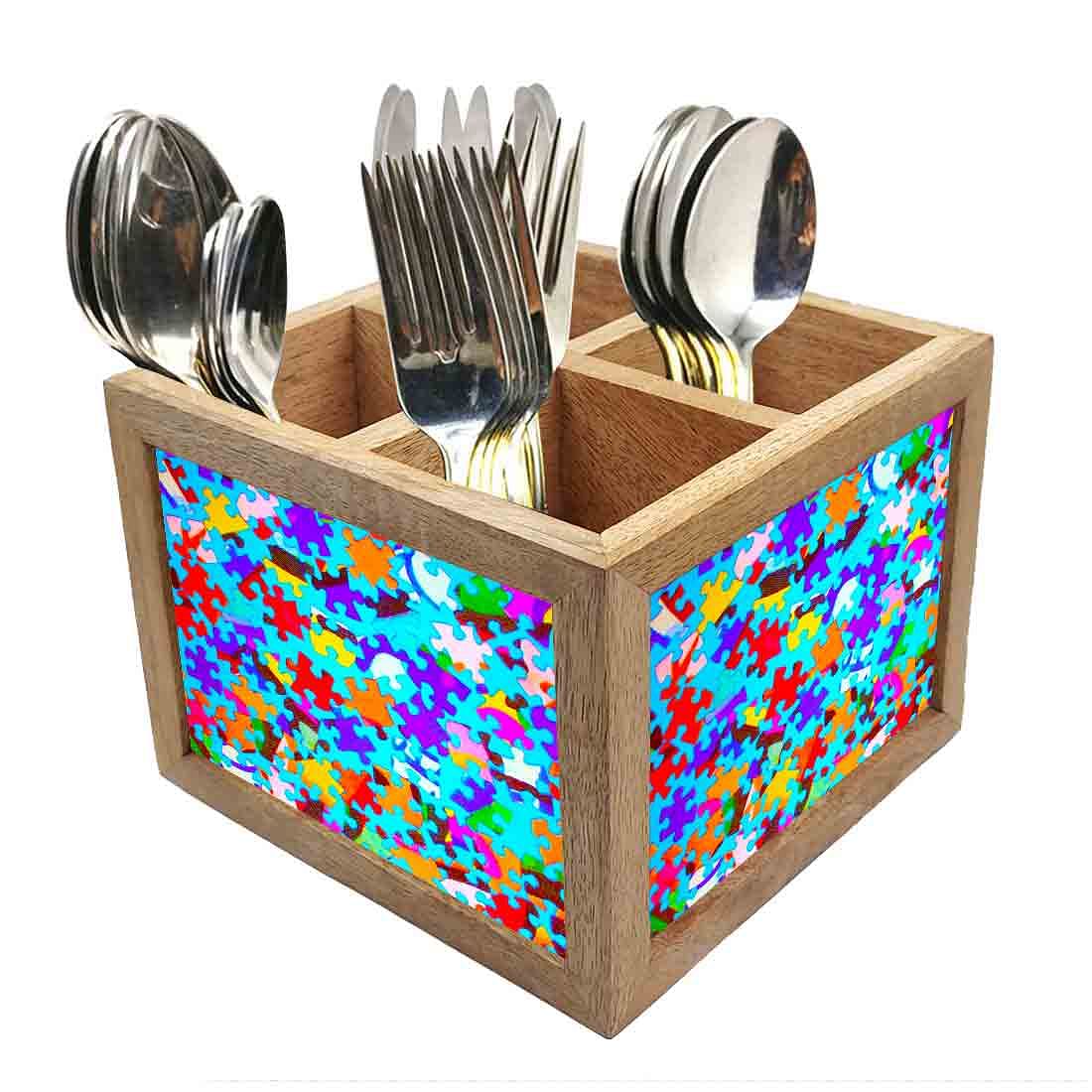 Puzzle Cutlery Holder Stand Silverware Caddy Organizer for Spoons, Forks & Knives-Made of Pinewood