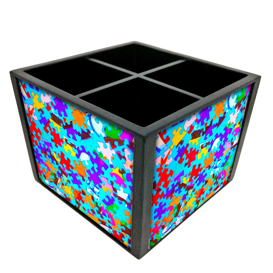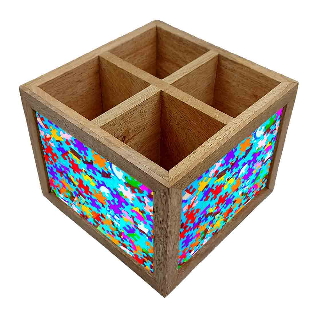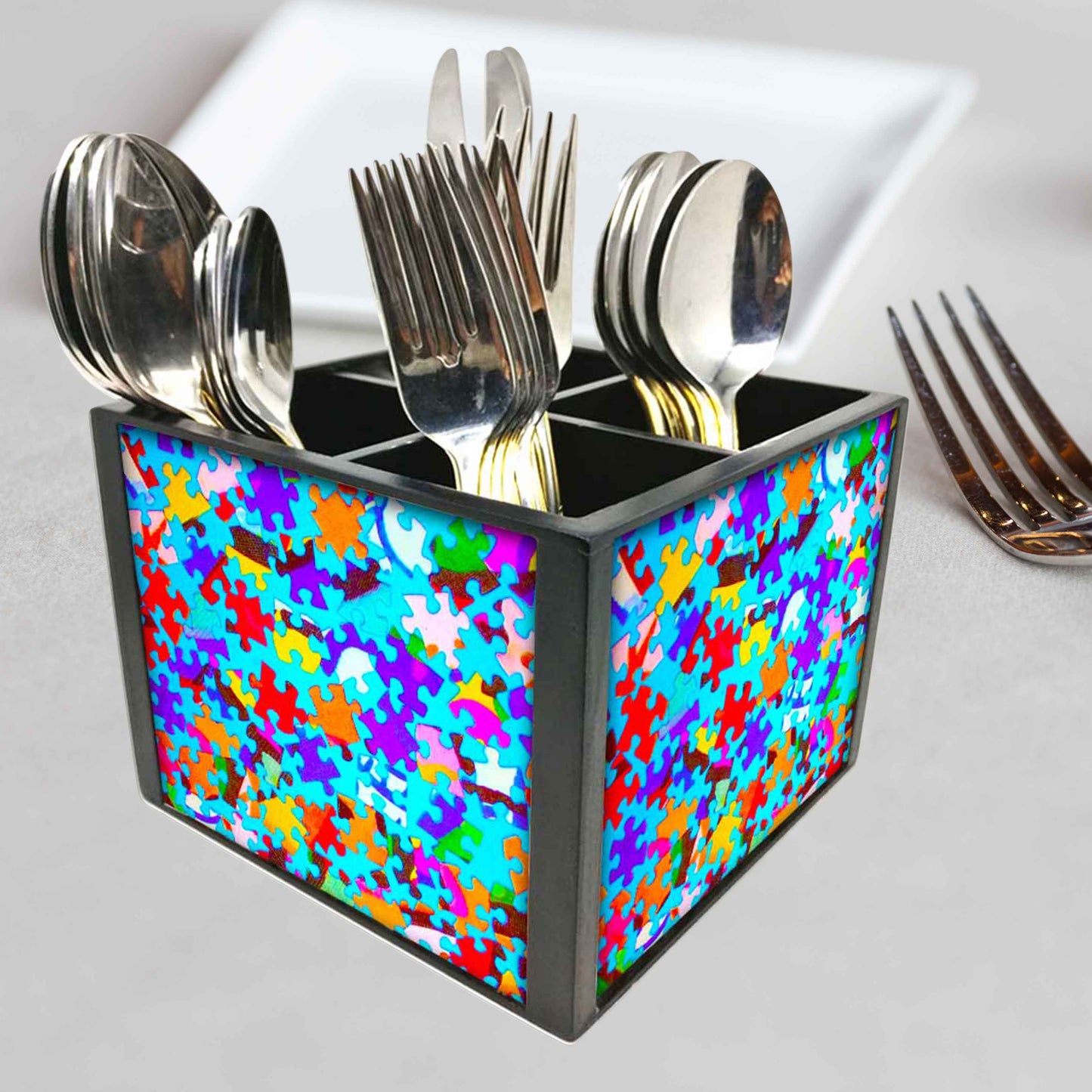 Puzzle Cutlery Holder Stand Silverware Caddy Organizer for Spoons, Forks & Knives-Made of Pinewood