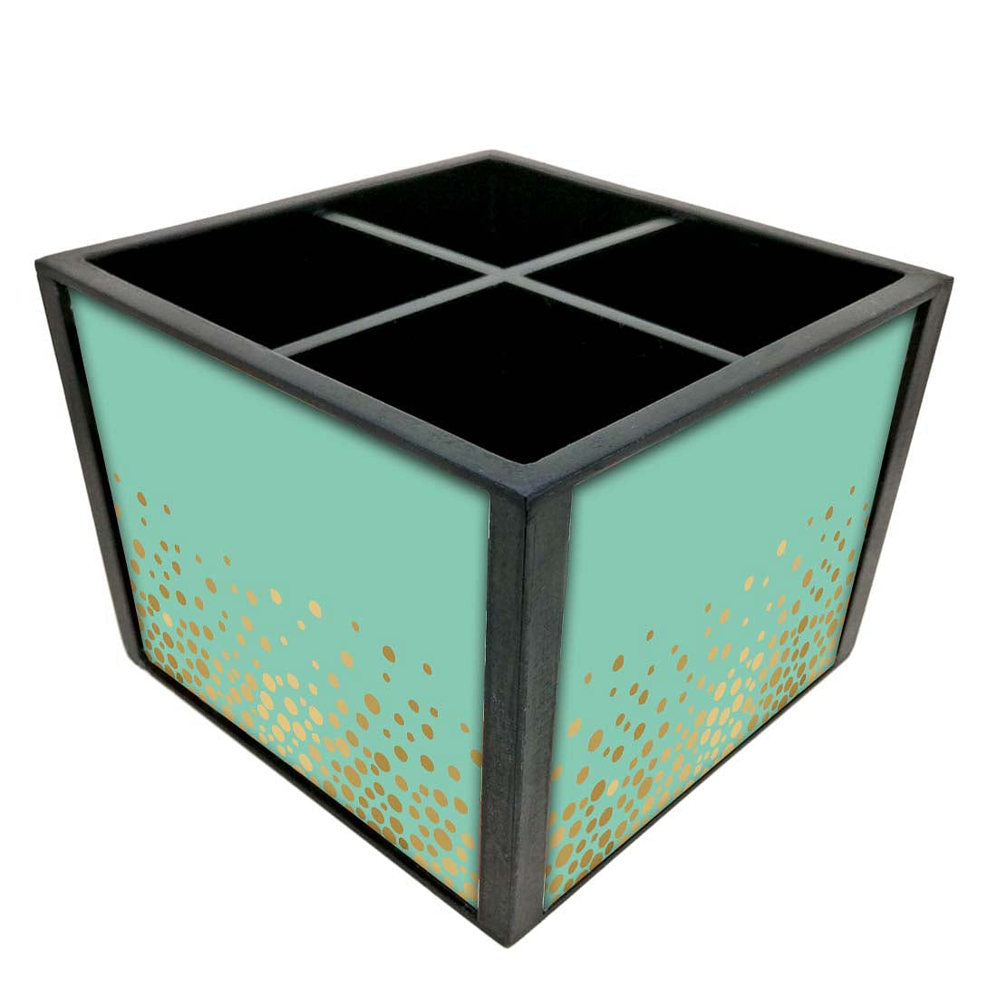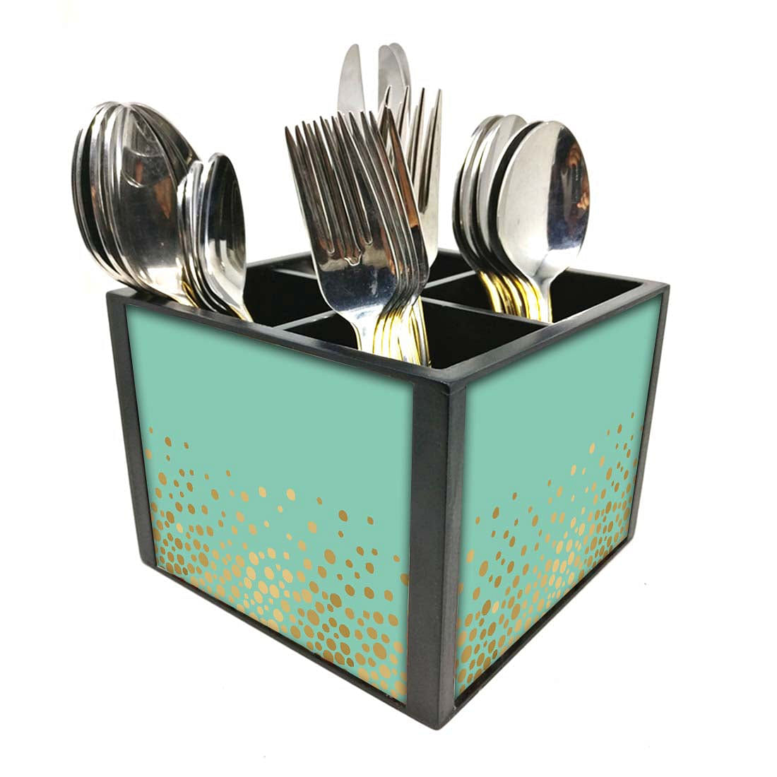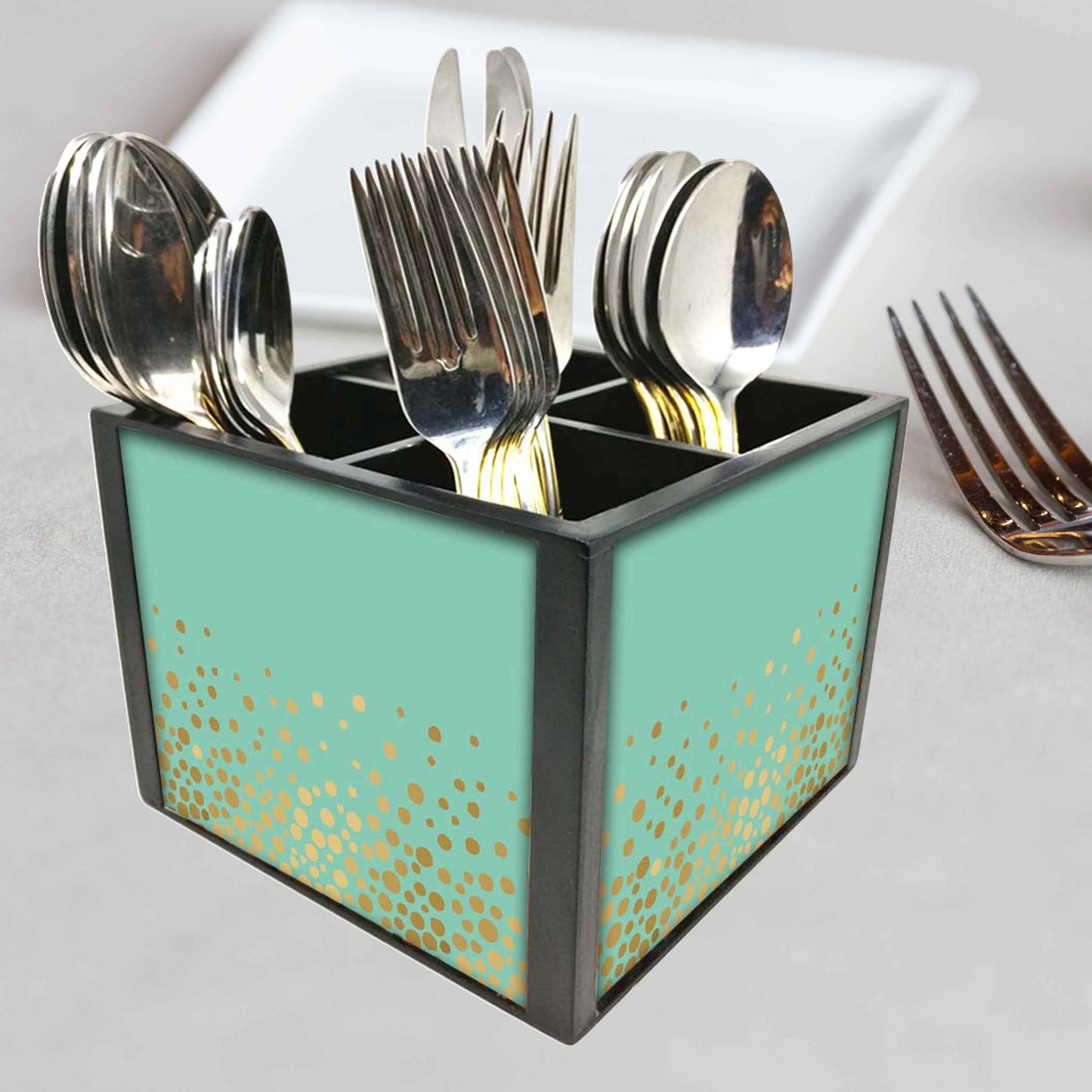 Mint & Gold Cutlery Holder Stand Silverware Caddy Organizer for Spoons, Forks & Knives-Made of Pinewood