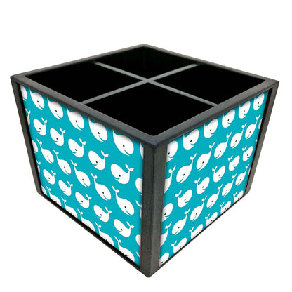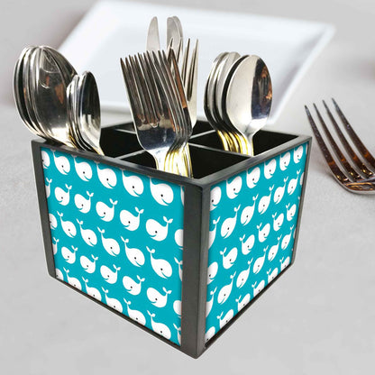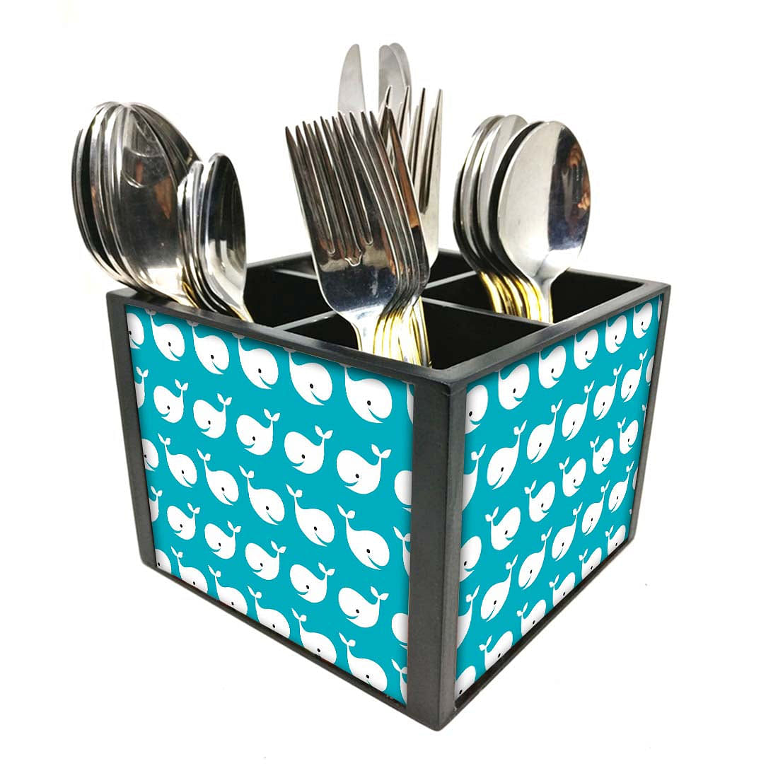 Fish Blue Cutlery Holder Stand Silverware Caddy Organizer for Spoons, Forks & Knives-Made of Pinewood