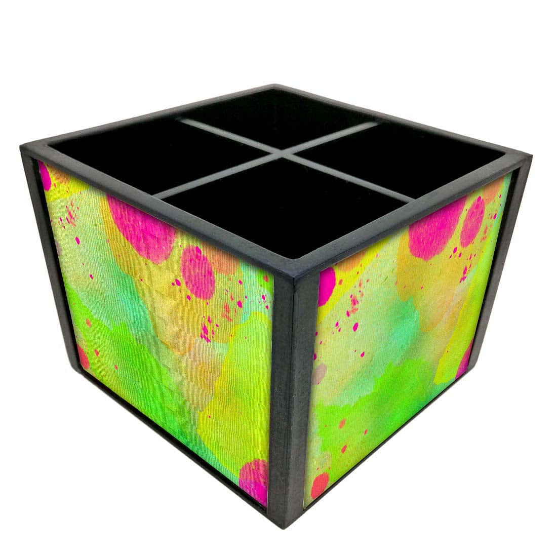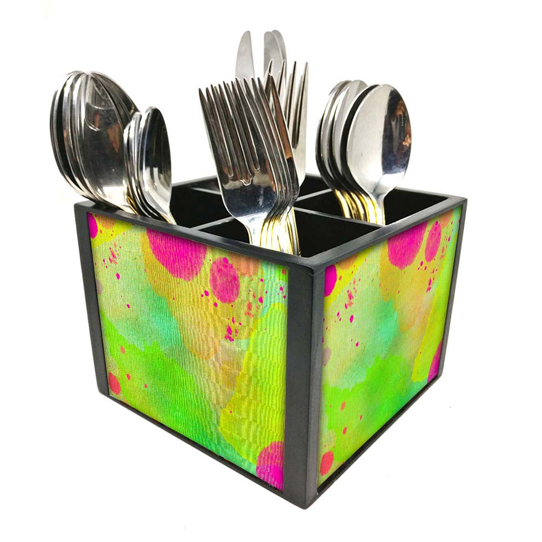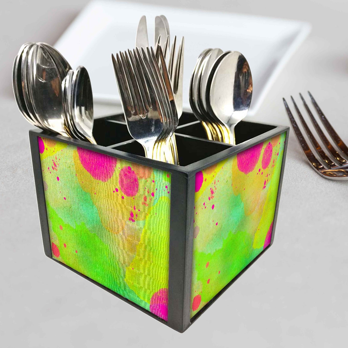 Green Watercolor Cutlery Holder Stand Silverware Caddy Organizer for Spoons, Forks & Knives-Made of Pinewood