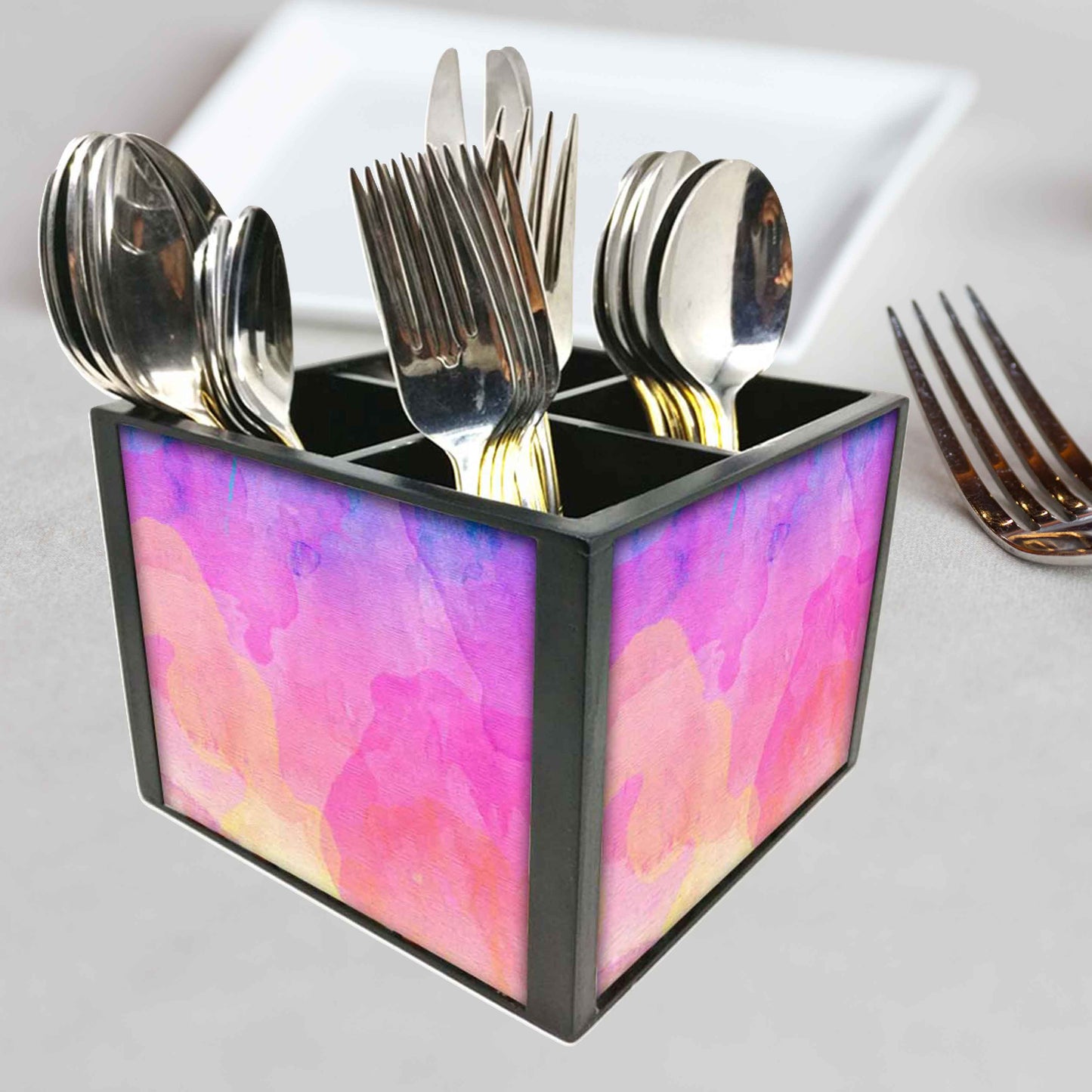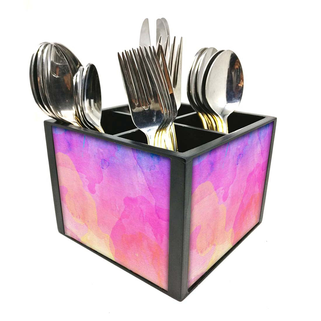Mix Watercolor Cutlery Holder Stand Silverware Caddy Organizer for Spoons, Forks & Knives-Made of Pinewood