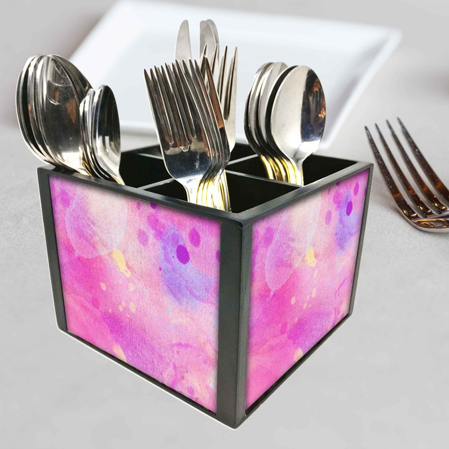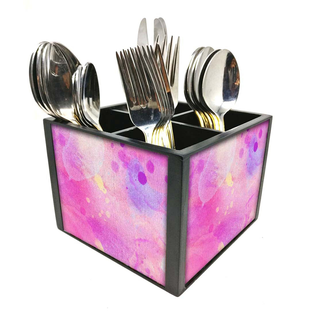Shade Watercolor Cutlery Holder Stand Silverware Caddy Organizer for Spoons, Forks & Knives-Made of Pinewood