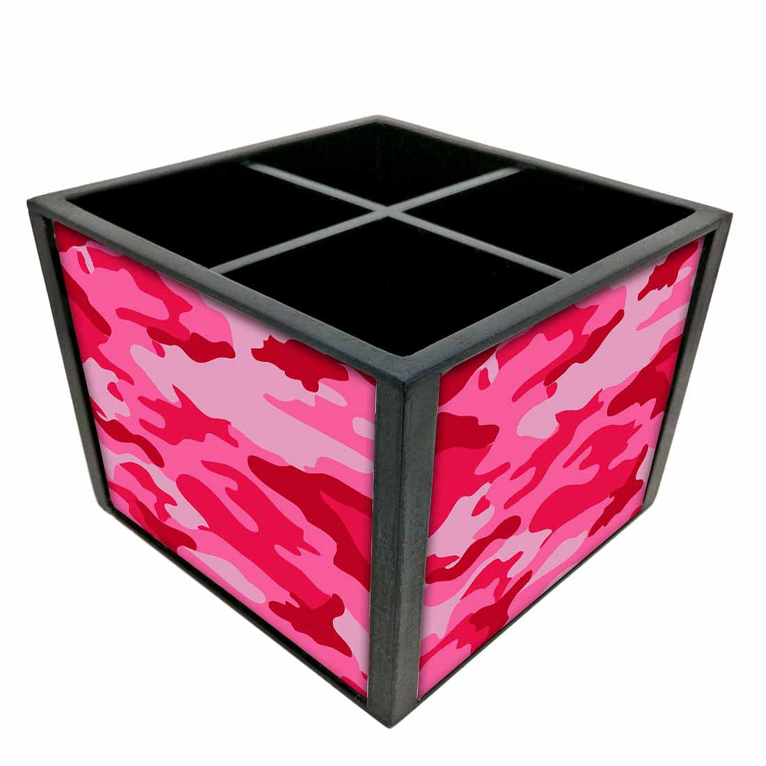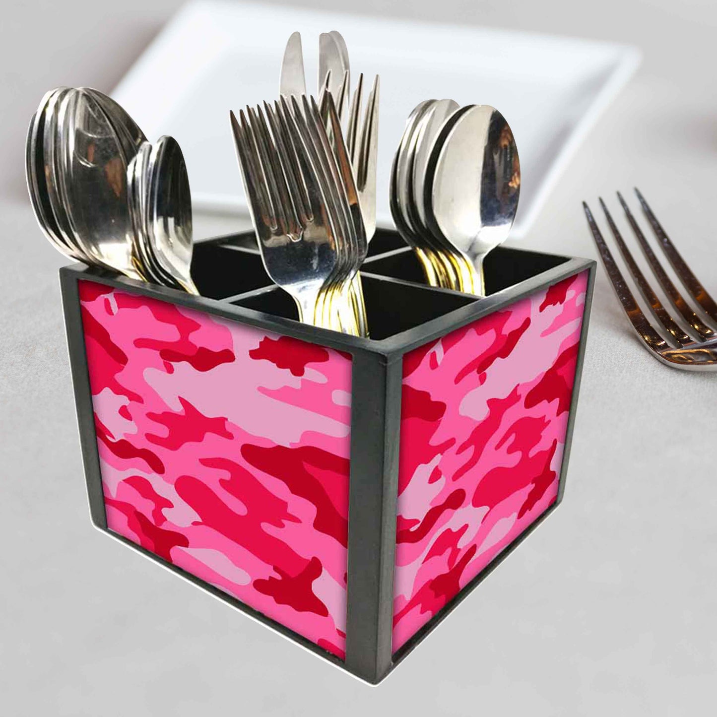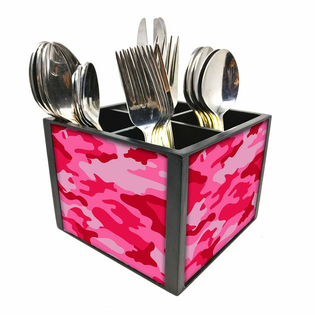 Pink Camo Cutlery Holder Stand Silverware Caddy Organizer for Spoons, Forks & Knives-Made of Pinewood