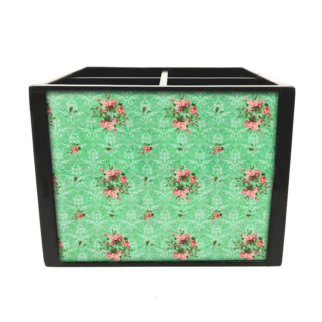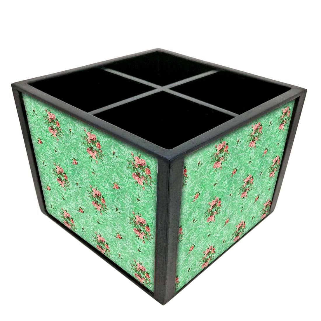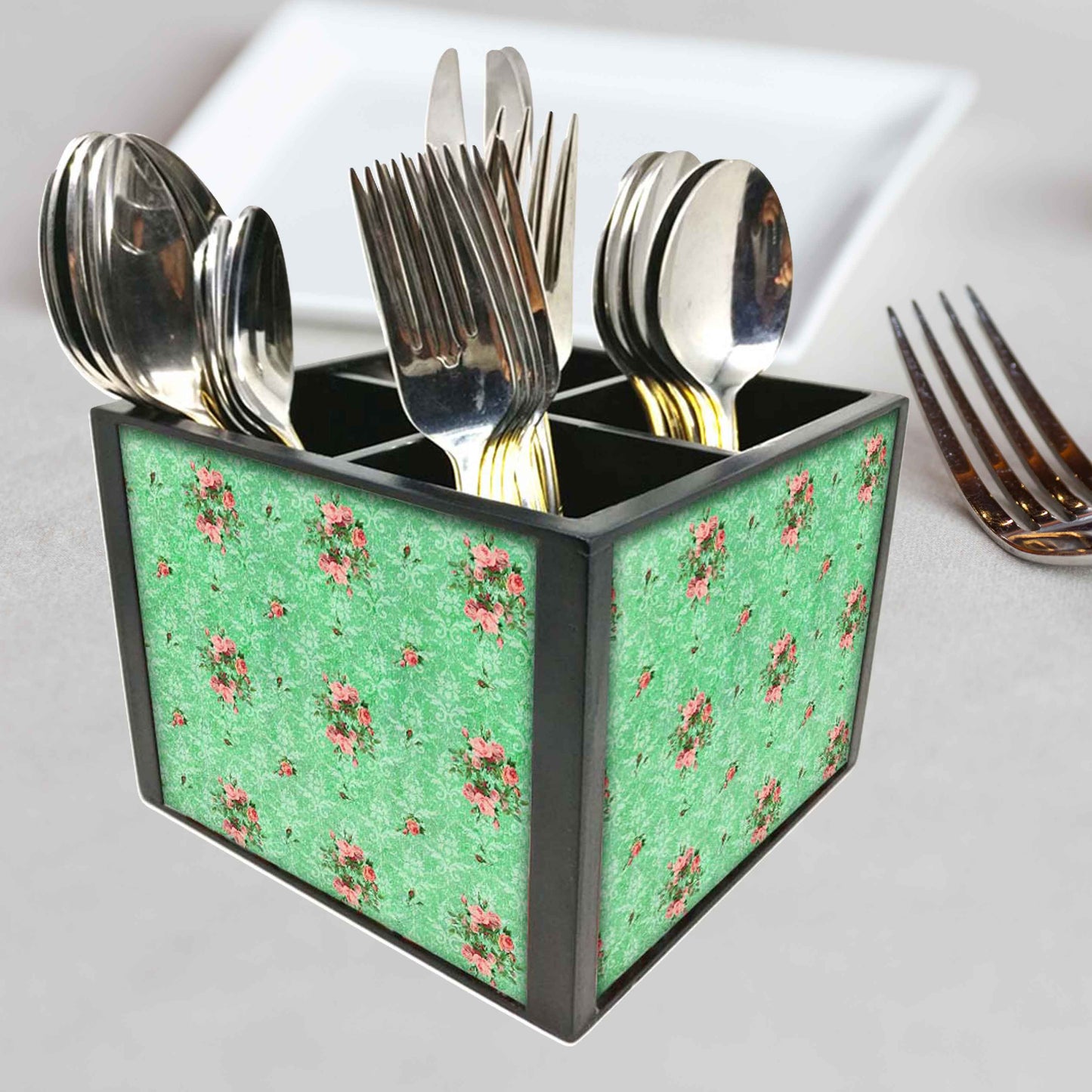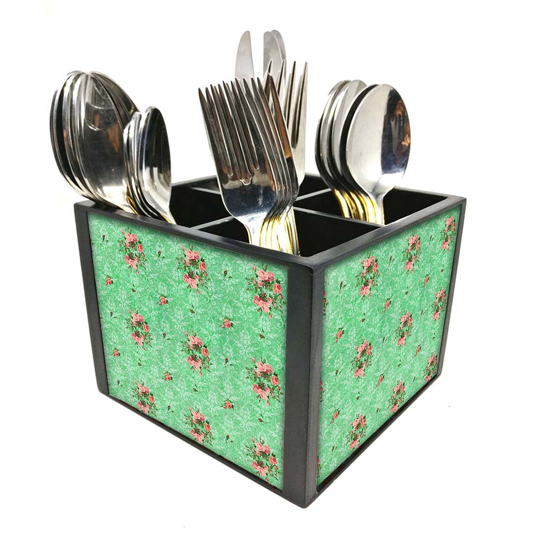 Black Wooden Cutlery Stand - Damask Shabby Chic Roses