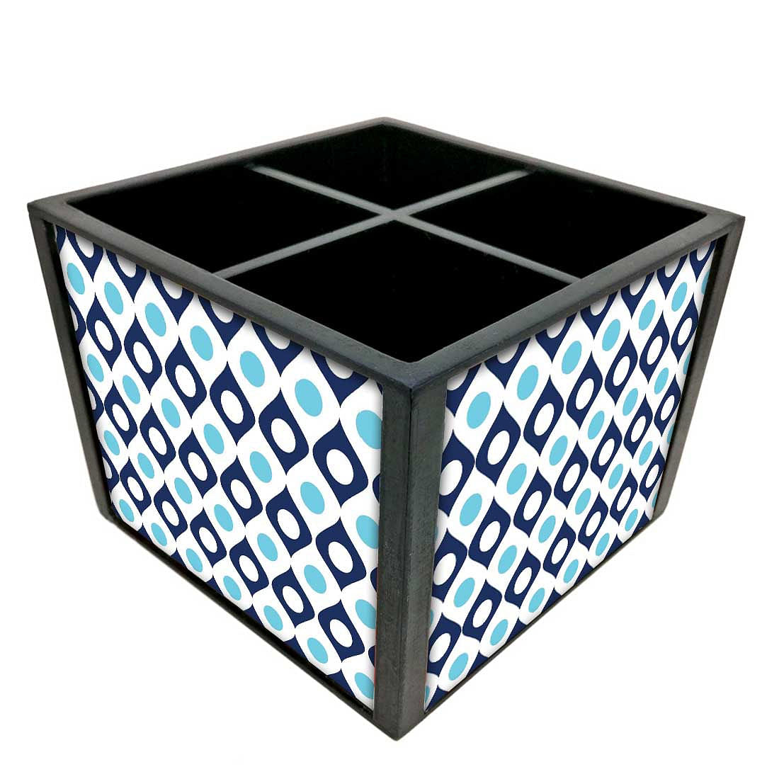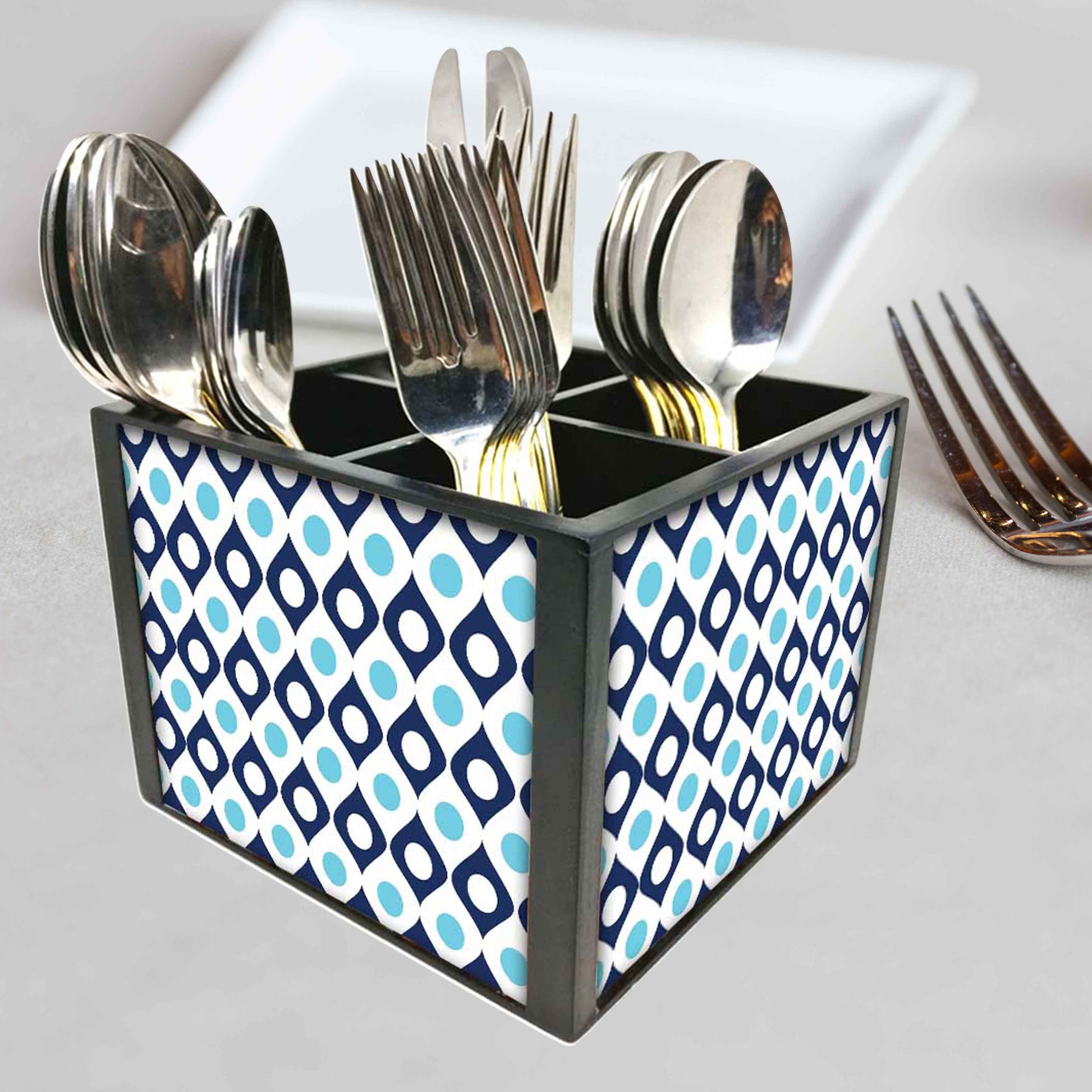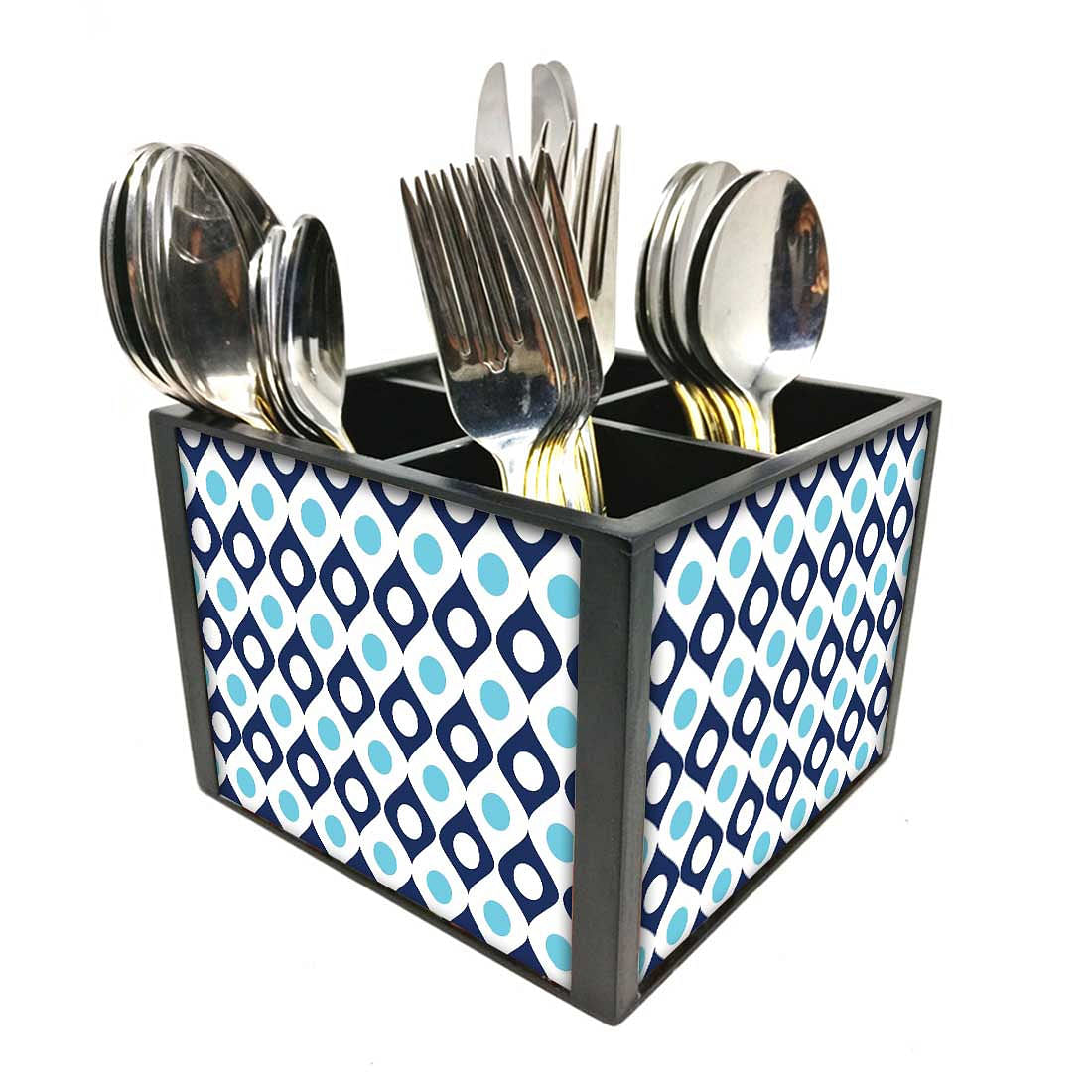 Shades Of Blue Retro Cutlery Holder Stand Silverware Caddy Organizer for Spoons, Forks & Knives-Made of Pinewood
