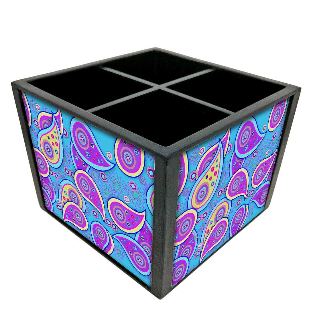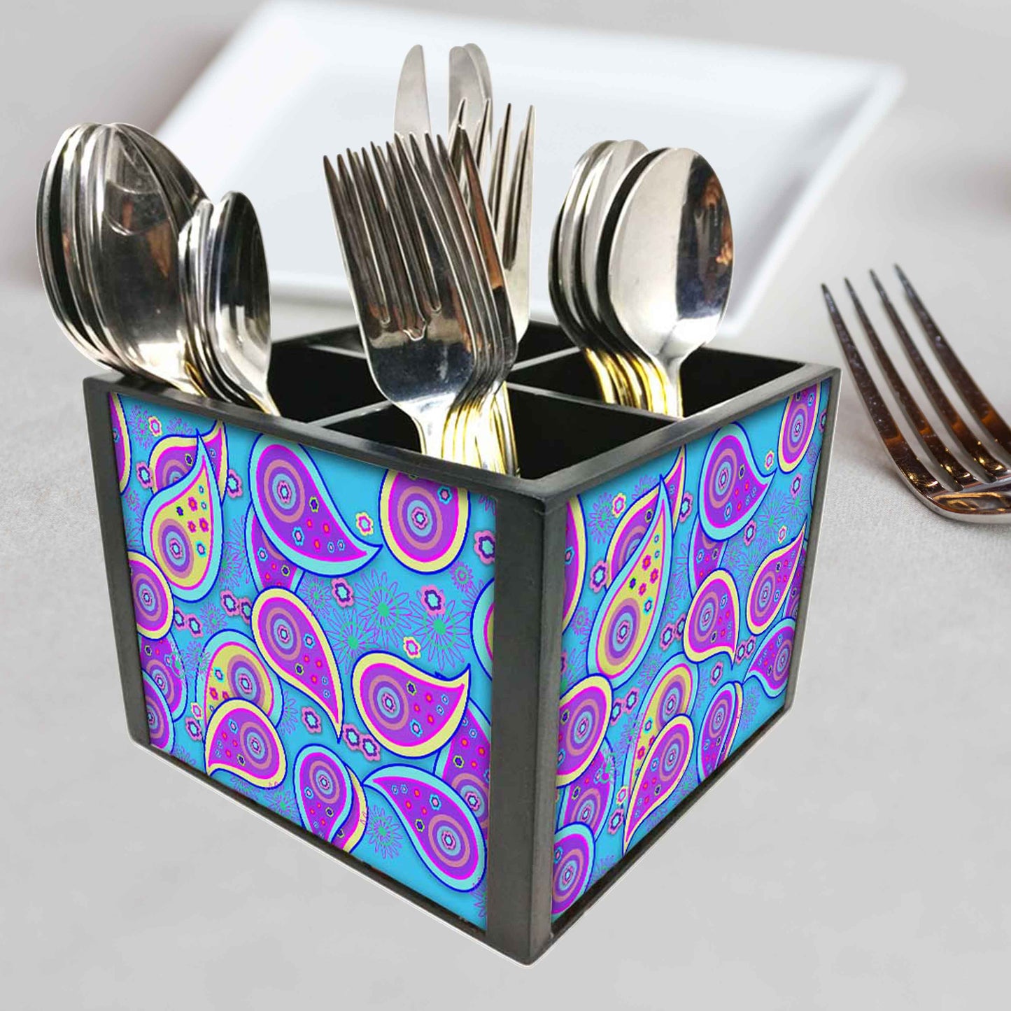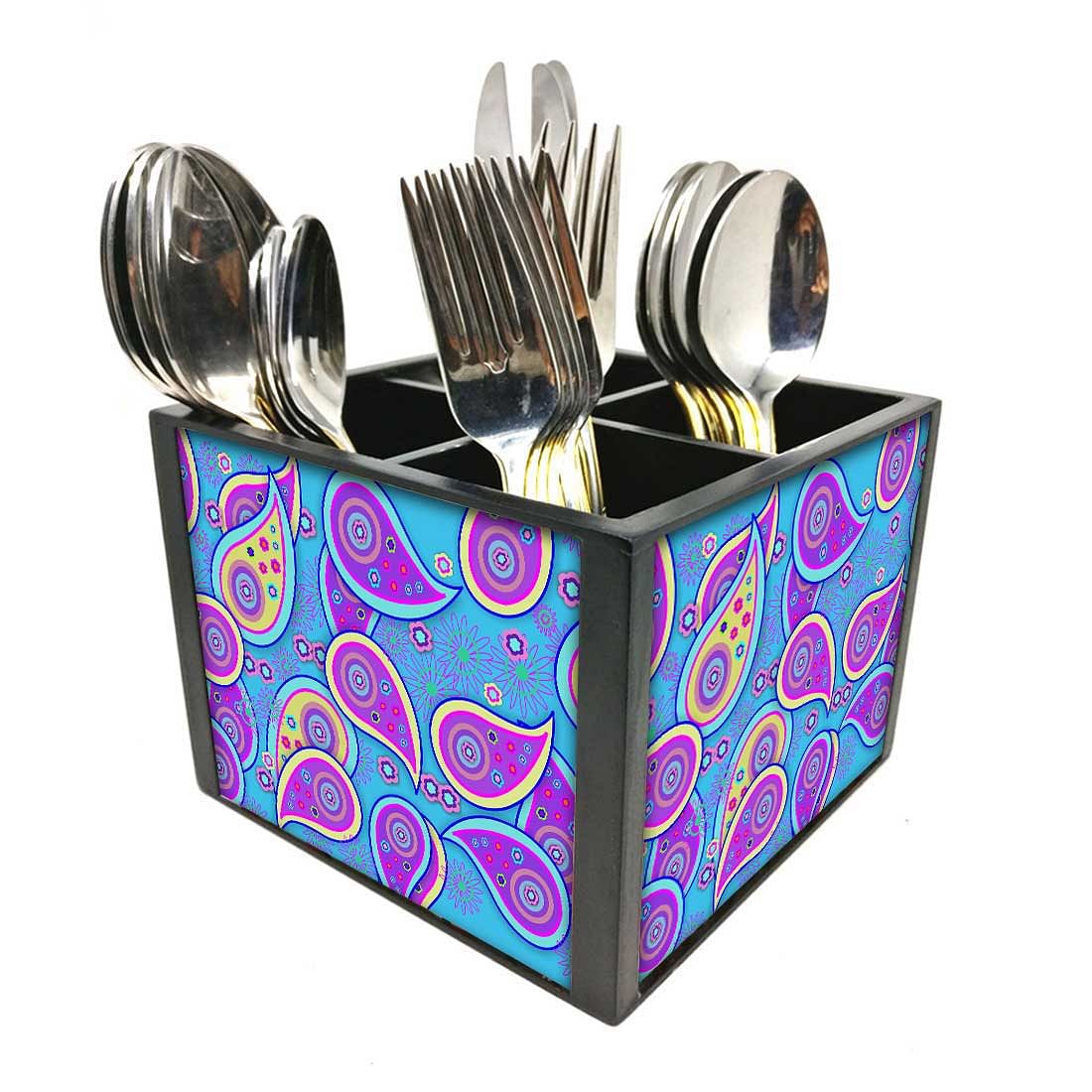 Paisley Cutlery Holder Stand Silverware Caddy Organizer for Spoons, Forks & Knives-Made of Pinewood