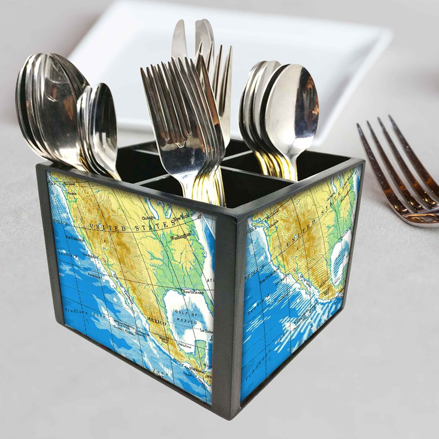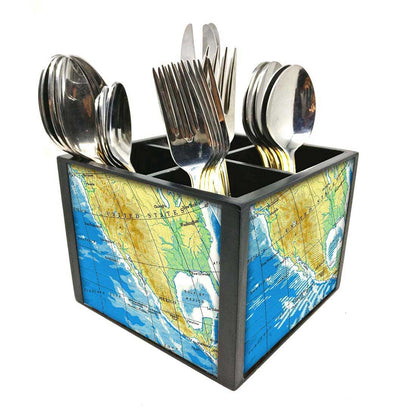 Silverware Cutlery Caddy Organizer for Spoons, Forks & Knives-Atlas Map