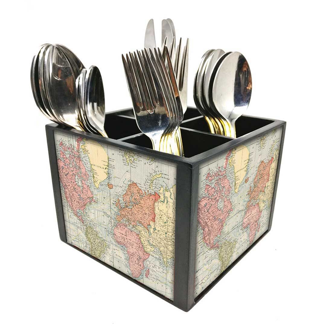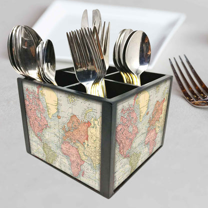 Designer Spoon&Fork Cutlery Holder-Vintage map