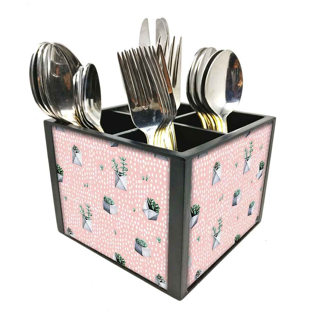 Designer Cutlery Holder Organizer for Spoons, Forks & Knives-Cactus Pink