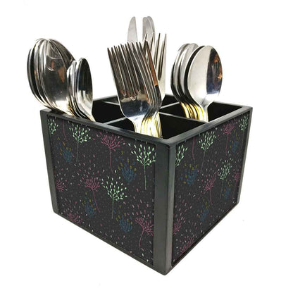 Wooden Cutlery Stand Holder - DELICATE FLOWERS