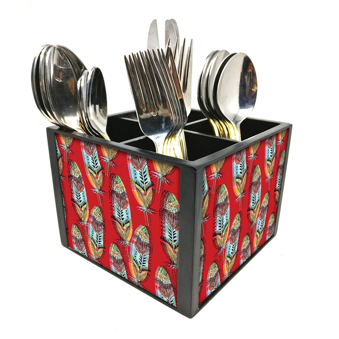 Designer Red Cutlery Holder for spoons forks and knives - Blood Feathers