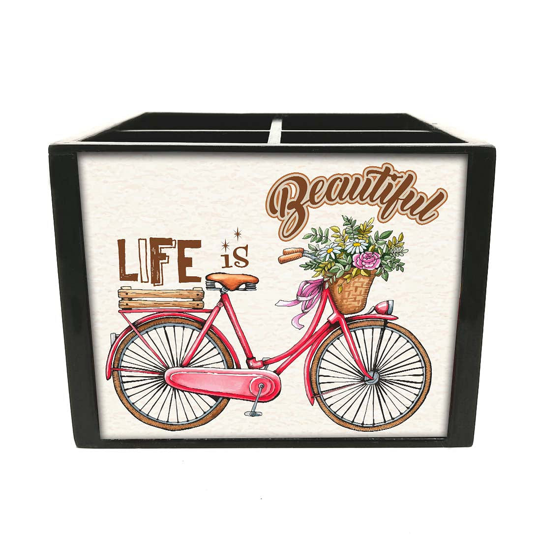 Organize your cutlery in style with our multi-functional 4 slot wooden storage box. Made from engineered wood with the design on all 4 sides this silverware organizer adds colour & style to your dining table or kitchen. Note: spoons not included for image representation only