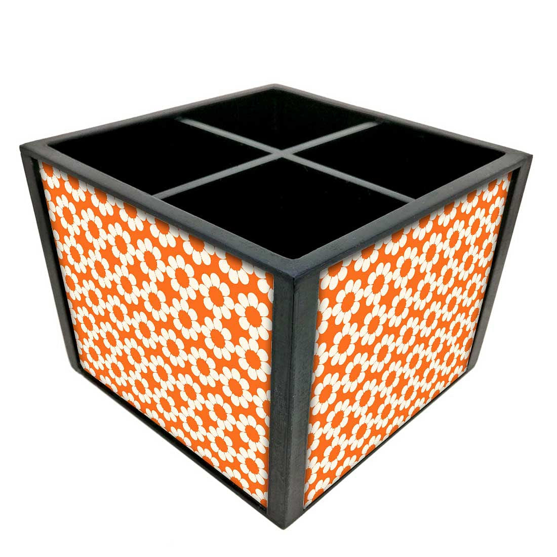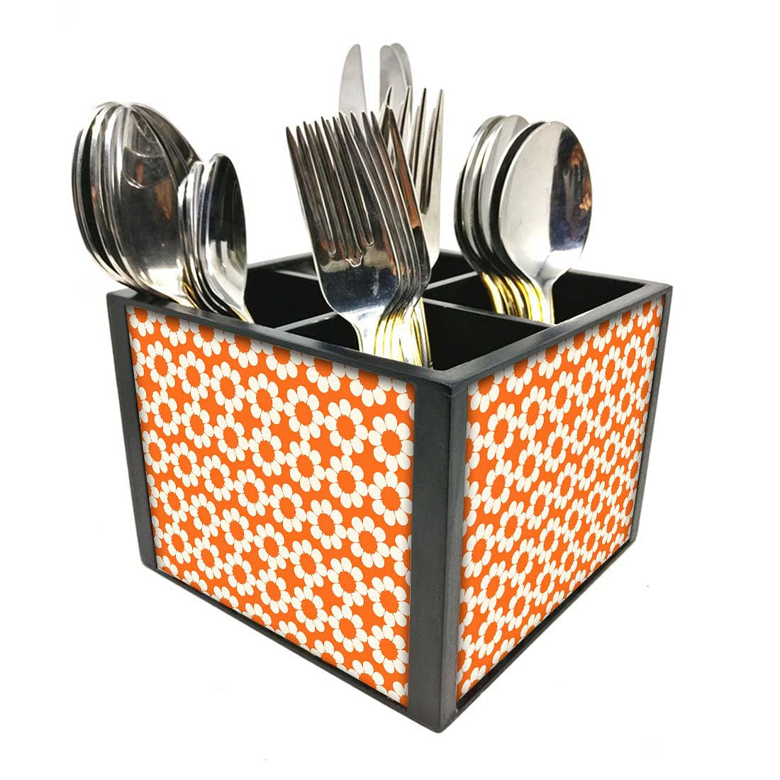 Orange Flowers DesignCutlery Holder Stand Silverware Caddy Organizer