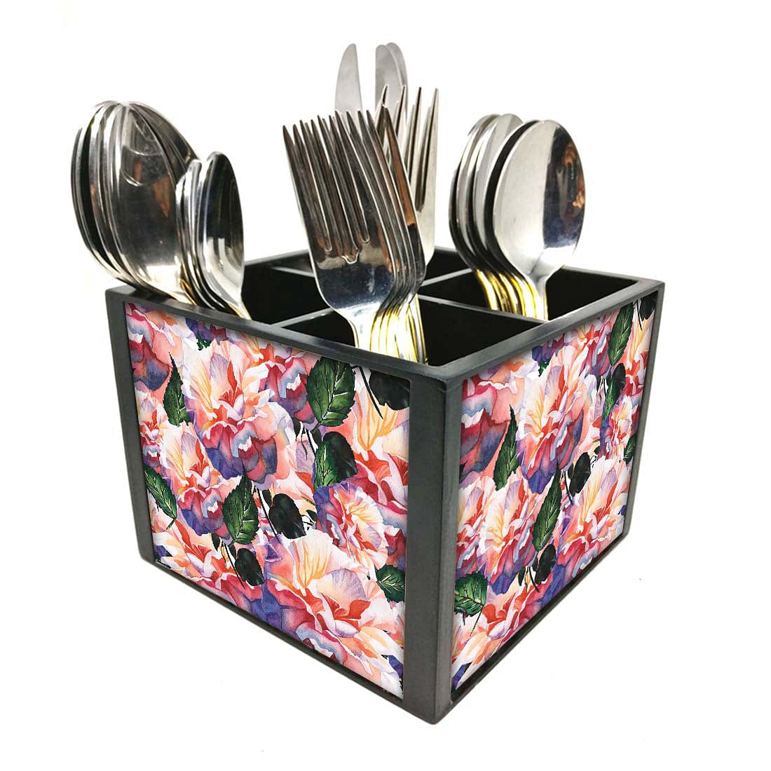 Vintage Pink RoseCutlery Holder Stand Silverware Caddy Organizer