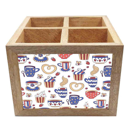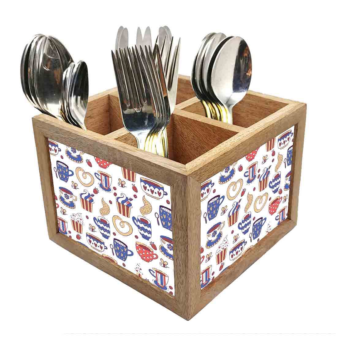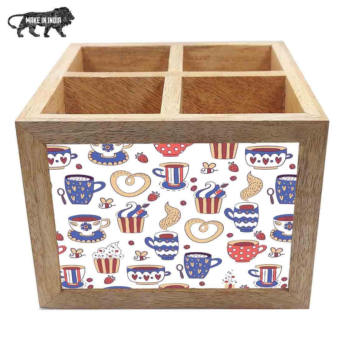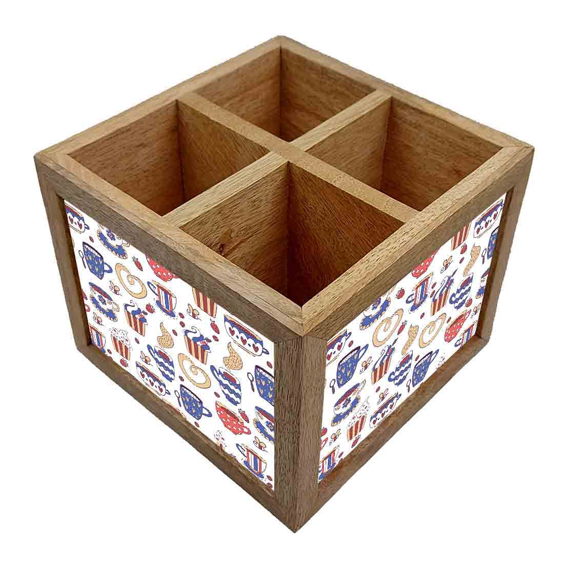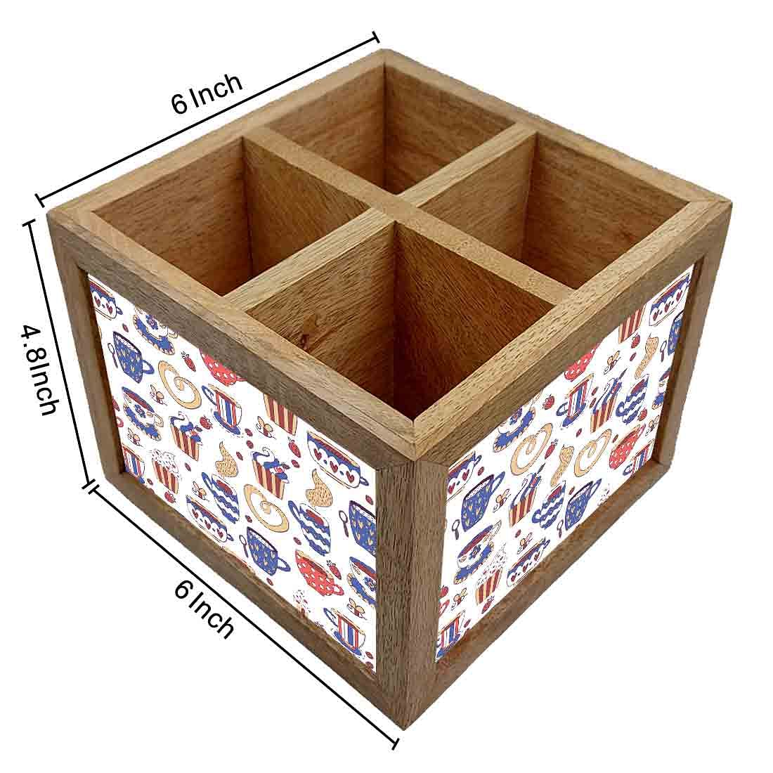 Organize your cutlery in style with our multi-functional 4 slot wooden storage box. Made from natural finish solid mango wood with the design on all 4 sides this silverware organizer adds colour & style to your dining table or kitchen. Note: spoons not included for image representation only