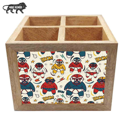 Natural Wooden Cutlery Holder - Ninzya Cartoon