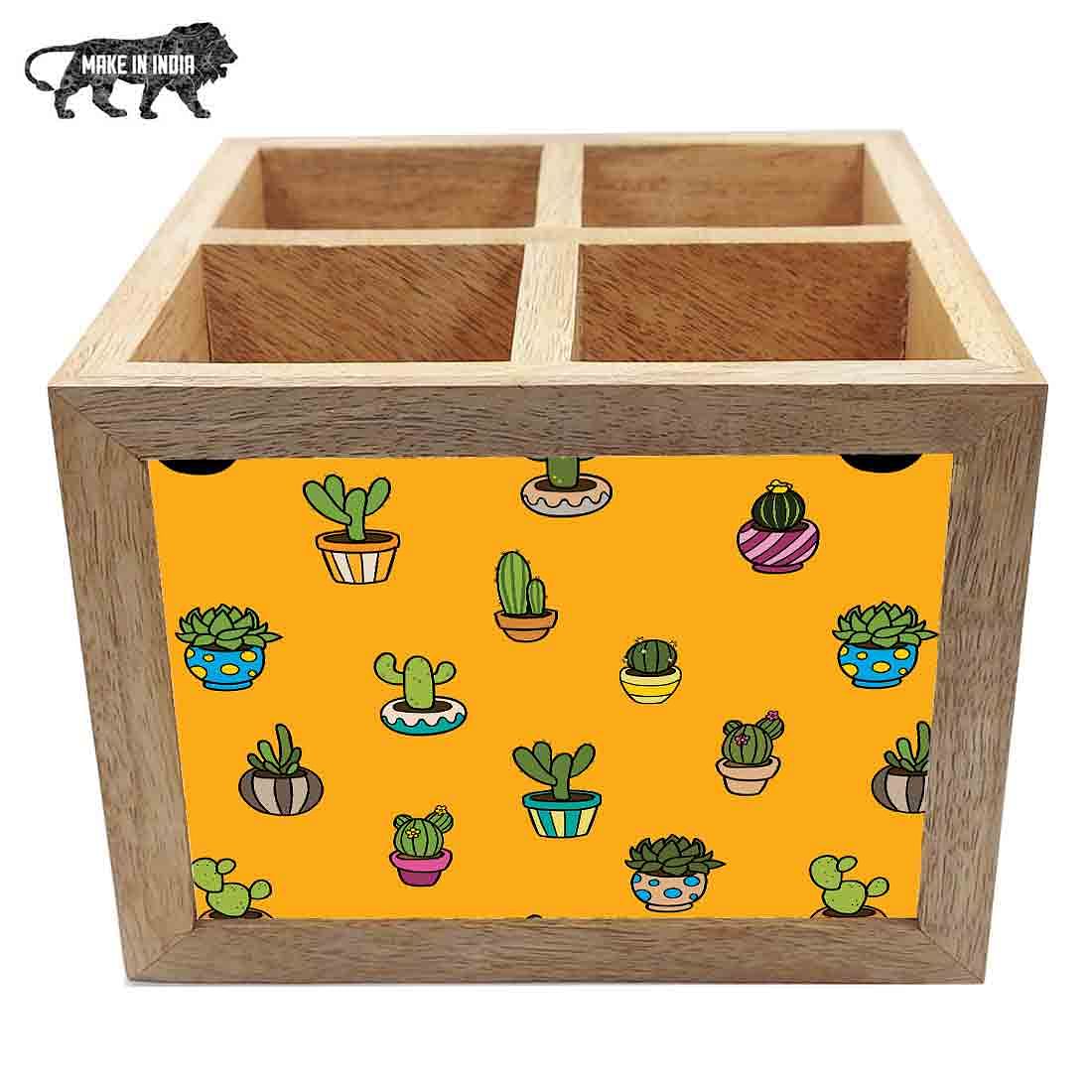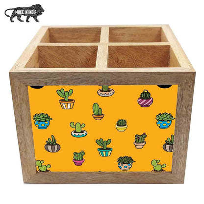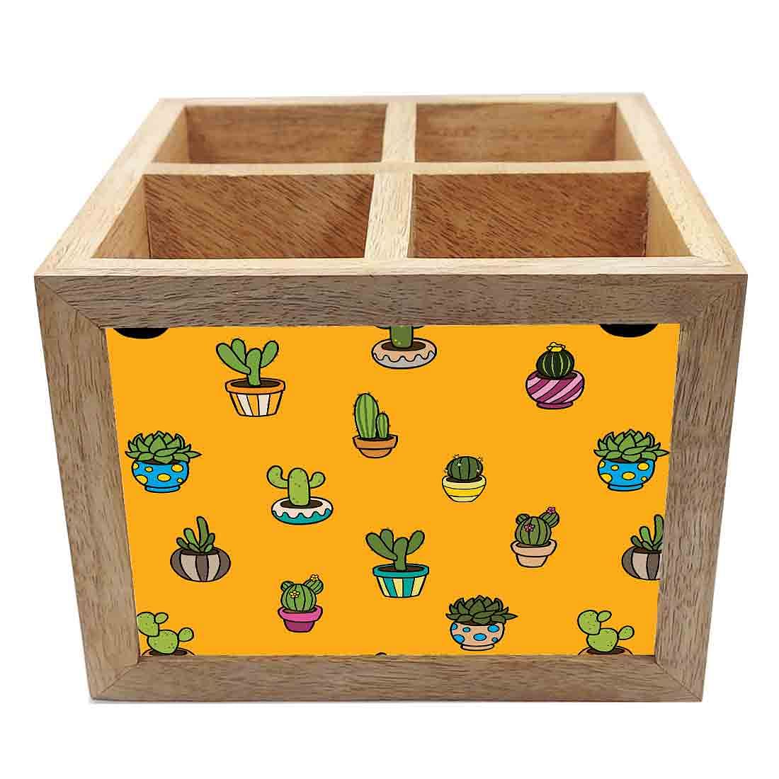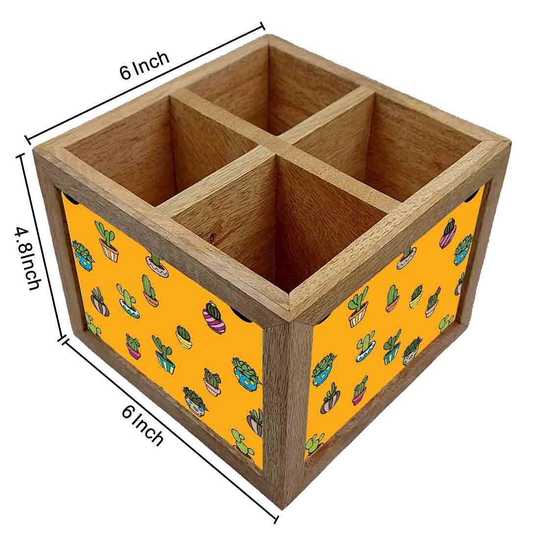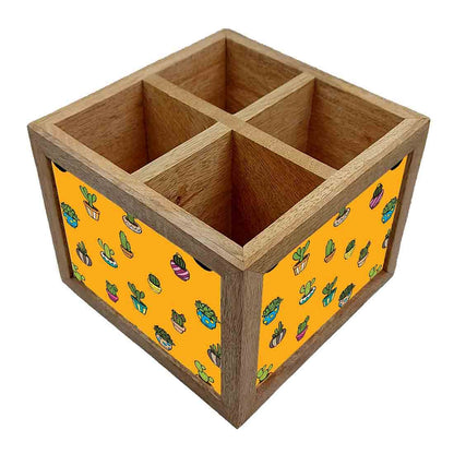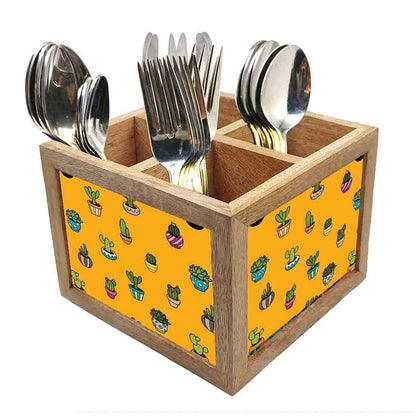 Organize your cutlery in style with our multi-functional 4 slot wooden storage box. Made from natural finish solid mango wood with the design on all 4 sides this silverware organizer adds colour & style to your dining table or kitchen. Note: spoons not included for image representation only