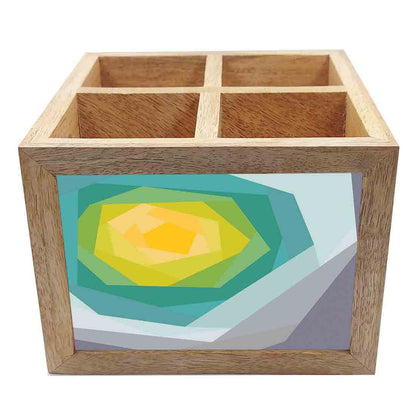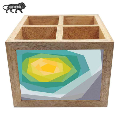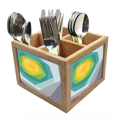 Natural Wooden Cutlery Stand for Spoon Fork Knife Holder - Abstract Flower