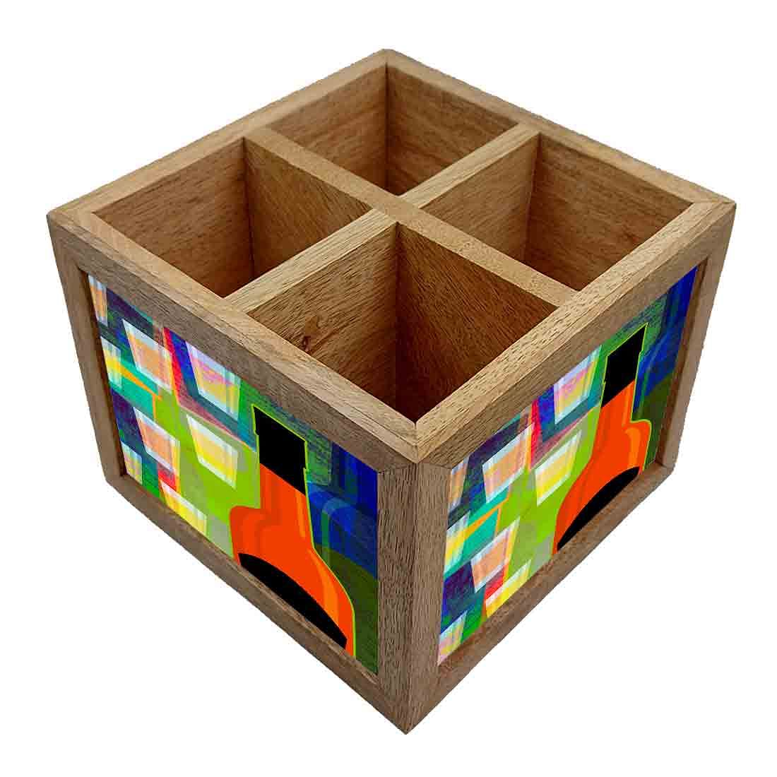 Wooden Dining Table Spoon Holder for Forks & Knives - Colorful Shades