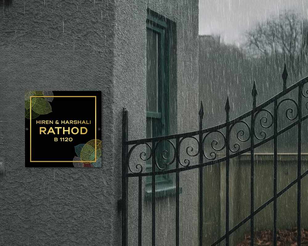 Nutcase Acrylic Name Plate for home is a stunning addition to your home entrance with a touch of elegance. Crafted with precision and care, these premium acrylic name plates have a beautifully printed pattern, combined with luxurious golden 3D fonts-creating a captivating visual impact. Perfect name plate for home, flats, bungalows or even cafes and restaurants.
