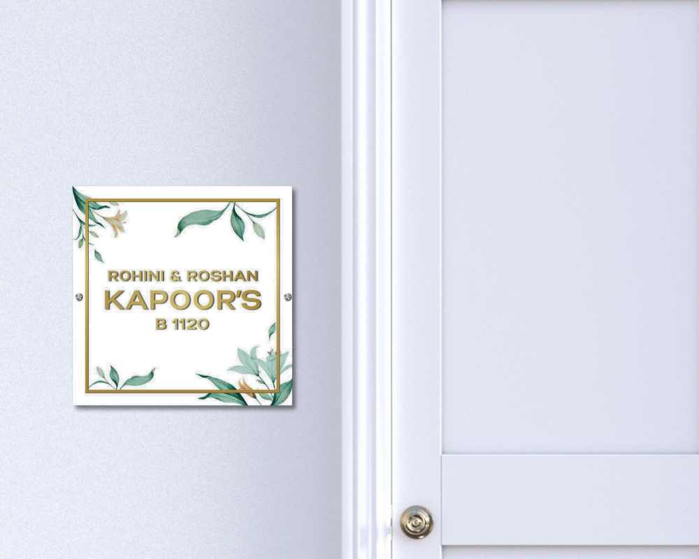 Designer Acrylic Name Plate With Golden 3D Fonts - Square Nameplate