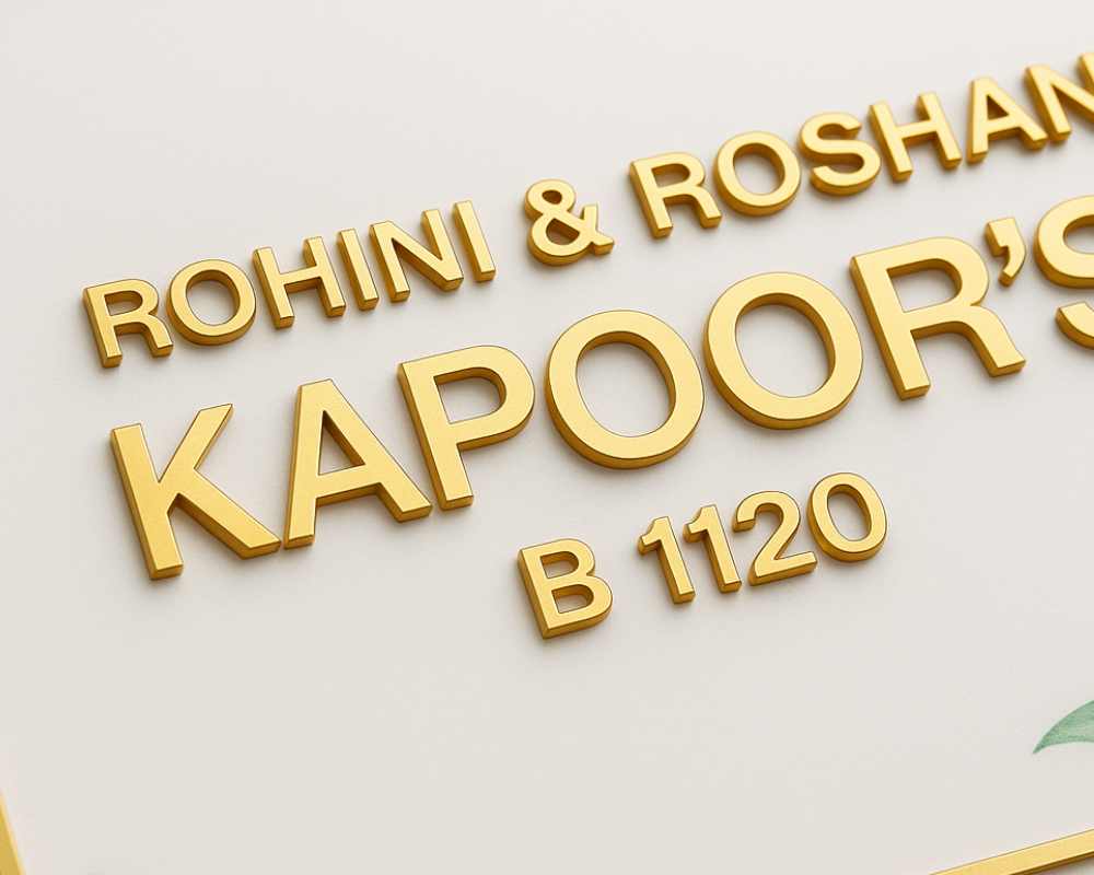 Crafted with 3mm thick golden acrylic letters, this name plate offers a premium, raised finish that catches every eye.Its elegant shine and bold presence add a luxurious touch to any entrance.