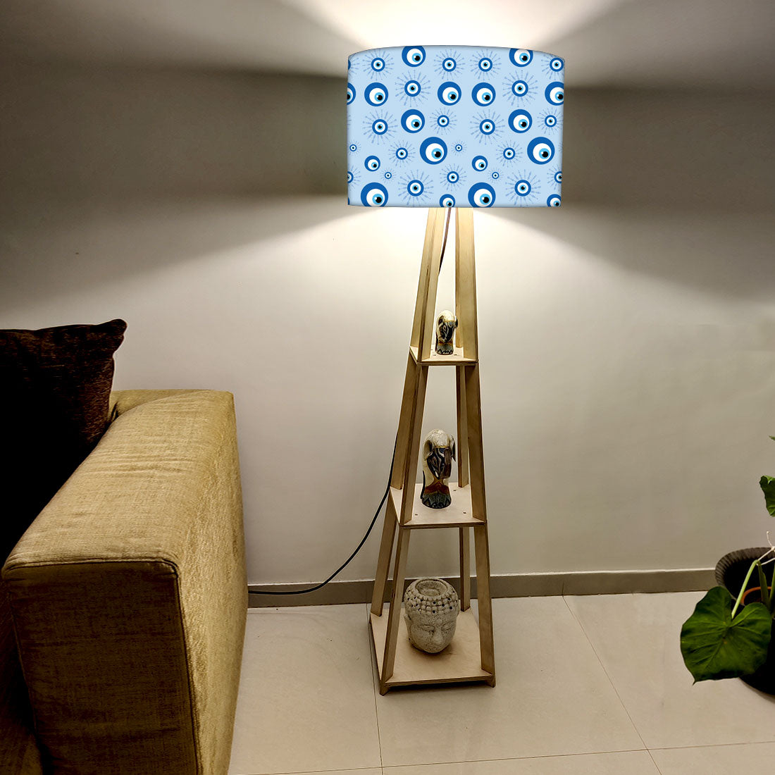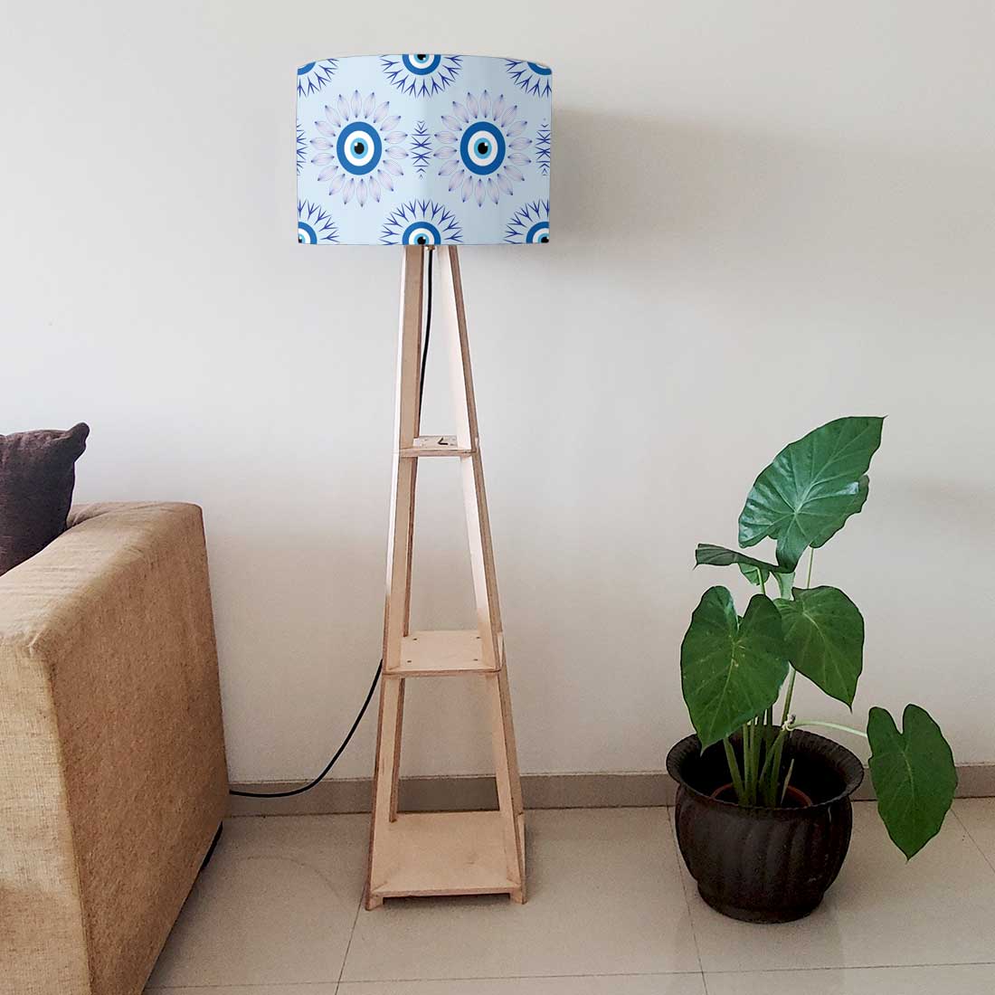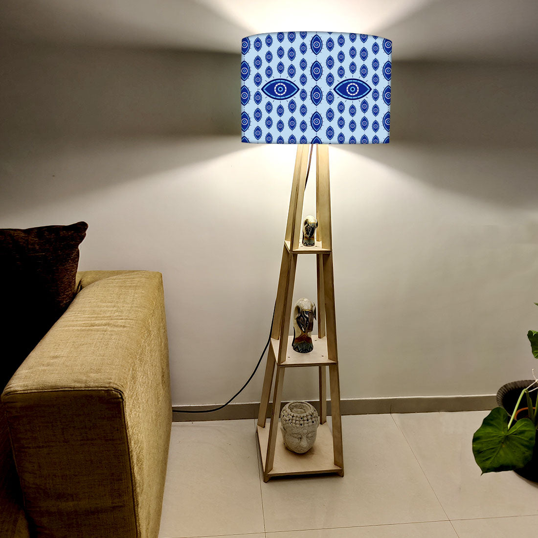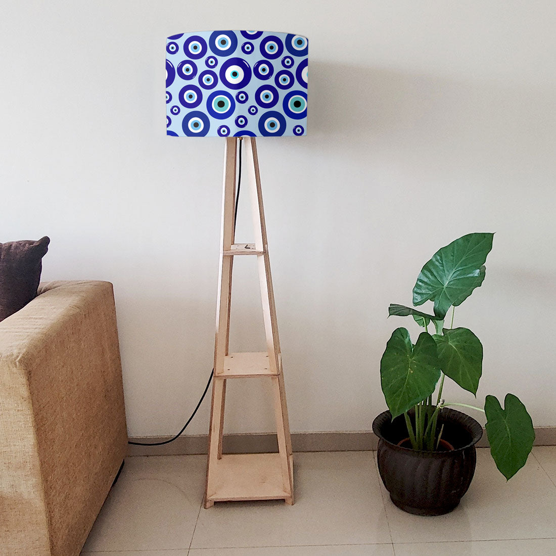 Designer Wooden Tripod Floor Lamp with Shelf for Living Room - Evil Eye Protector