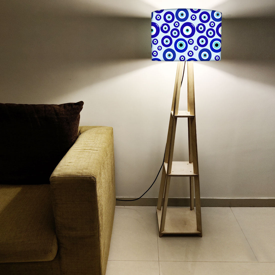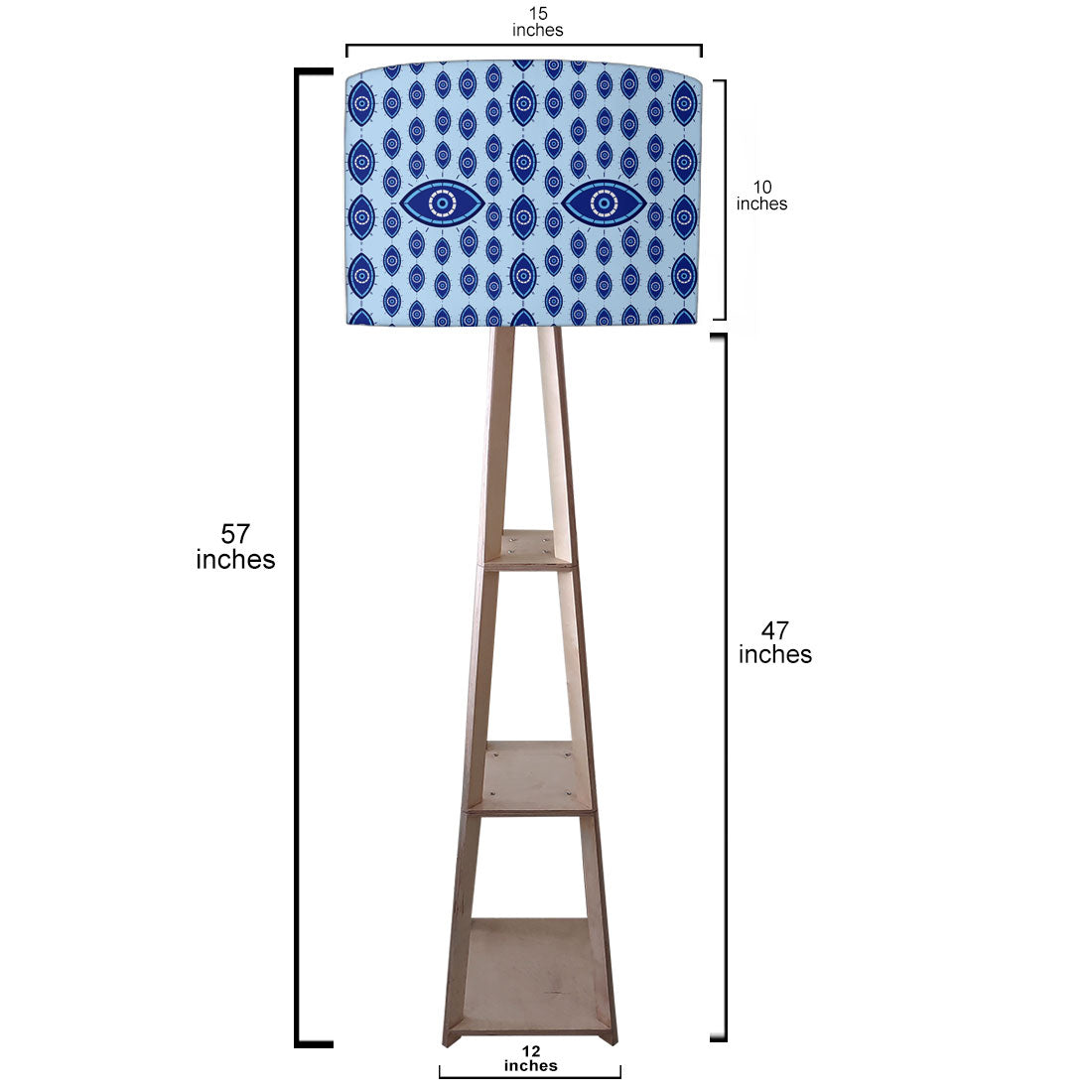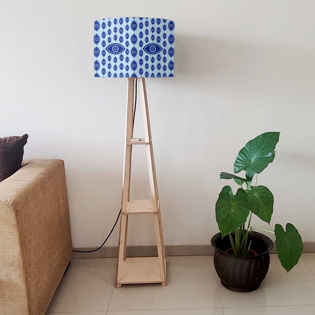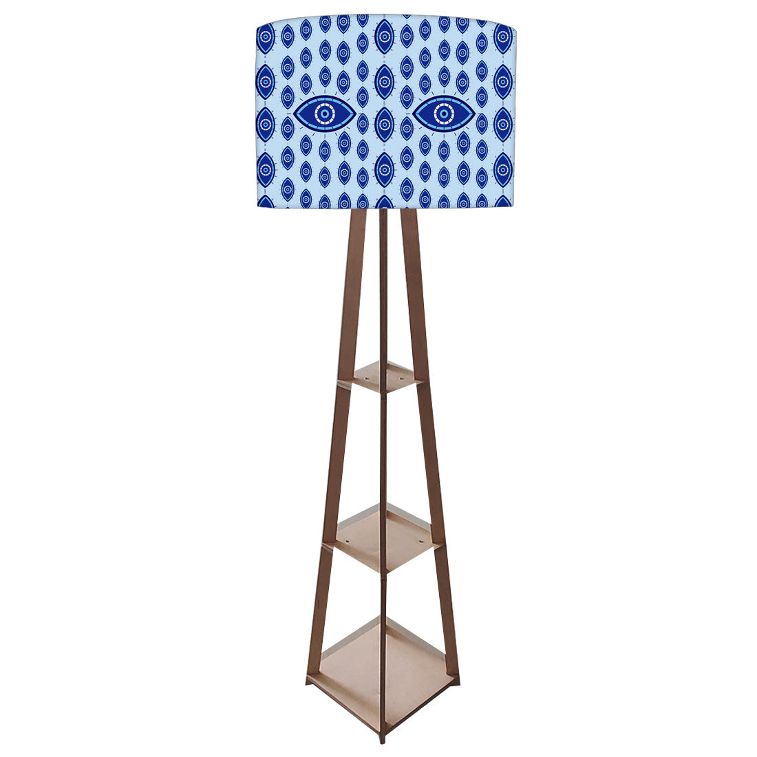 Designer Wooden Tripod Floor Lamp with Shelf for Living Room - Evil Eye Protector