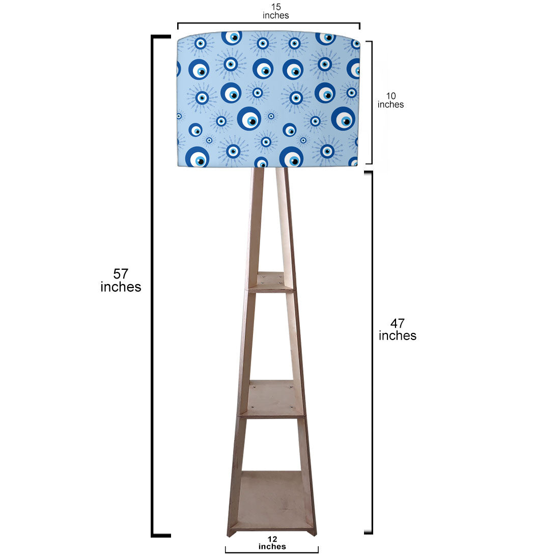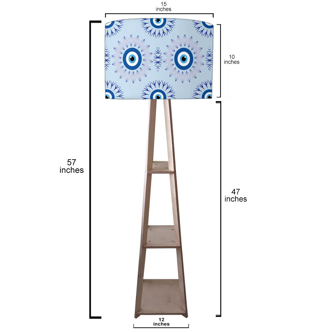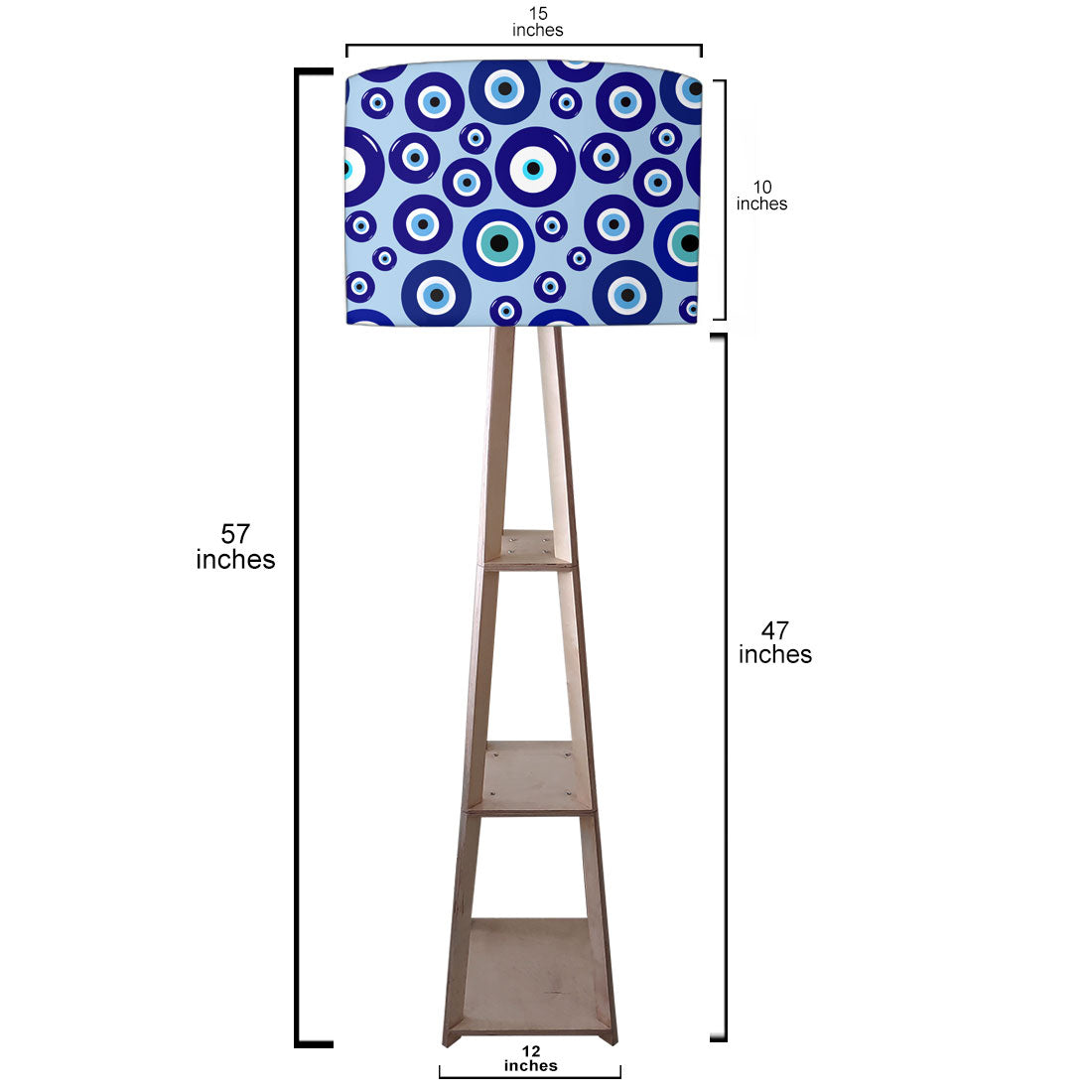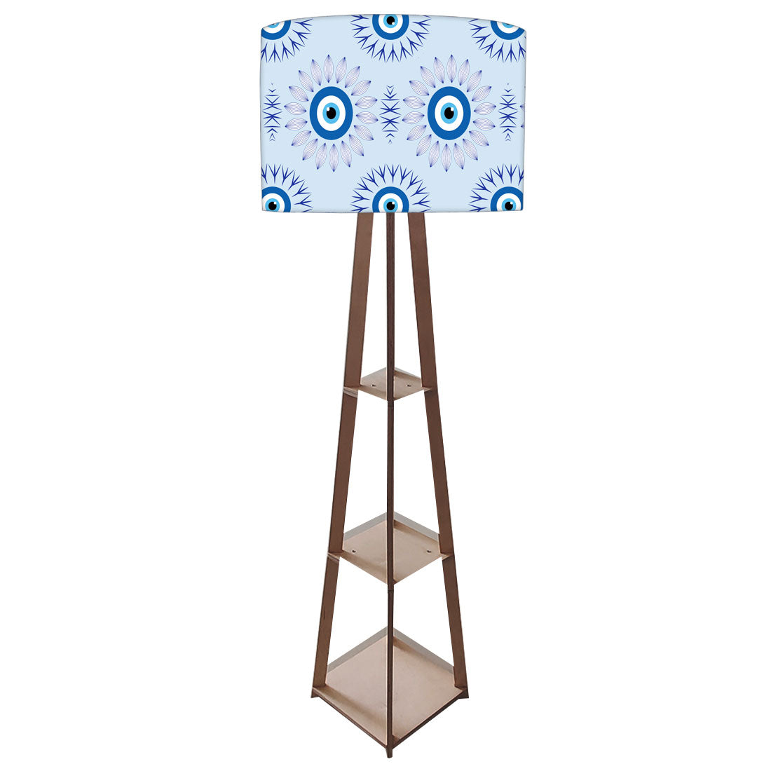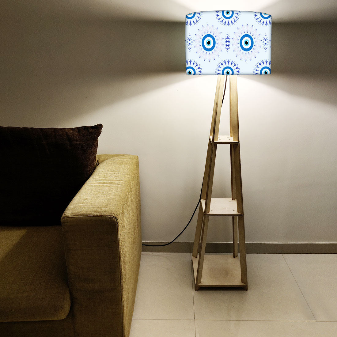 Designer Wooden Tripod Floor Lamp with Shelf for Living Room - Evil Eye Protector