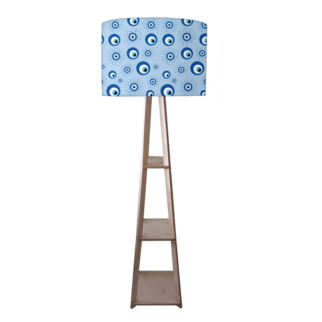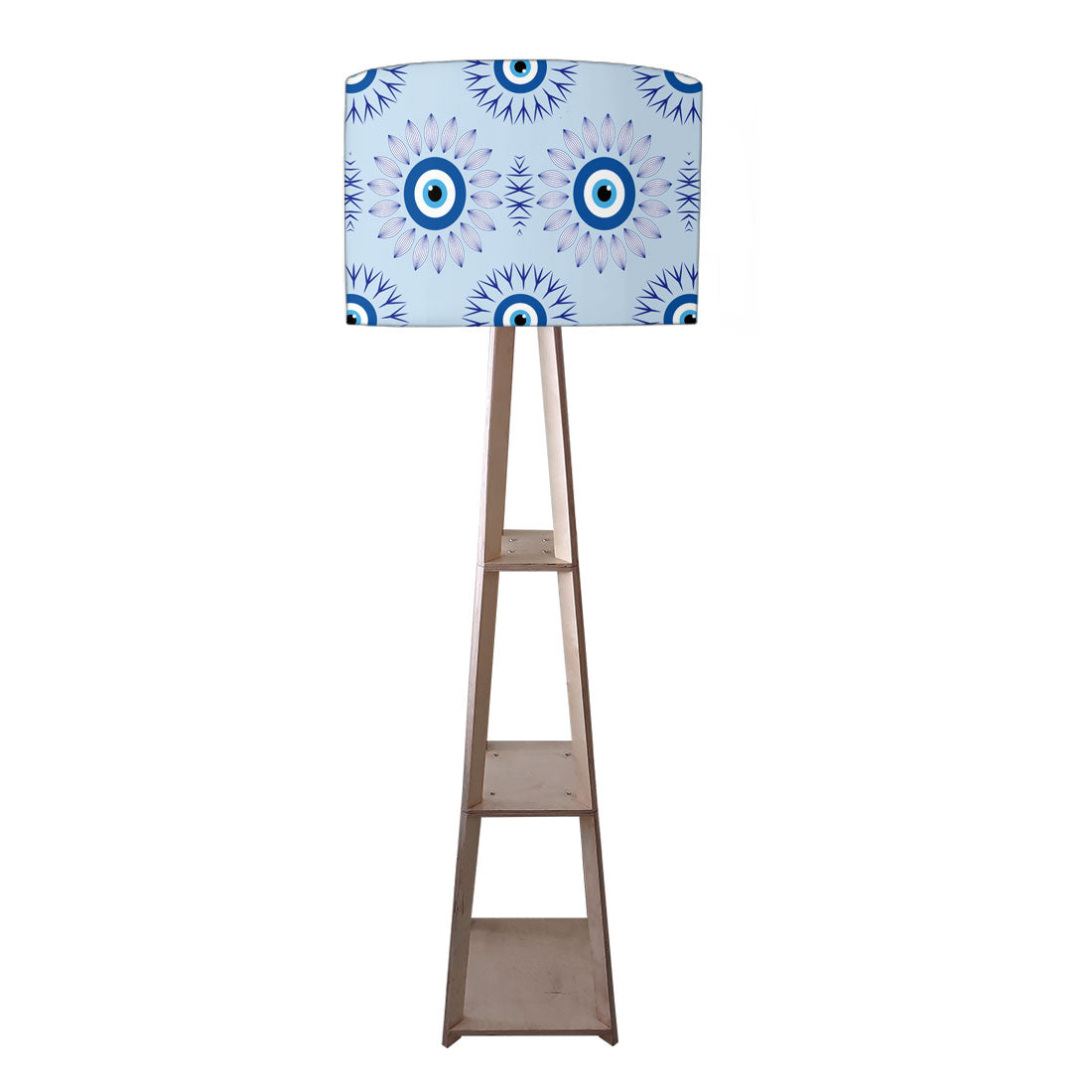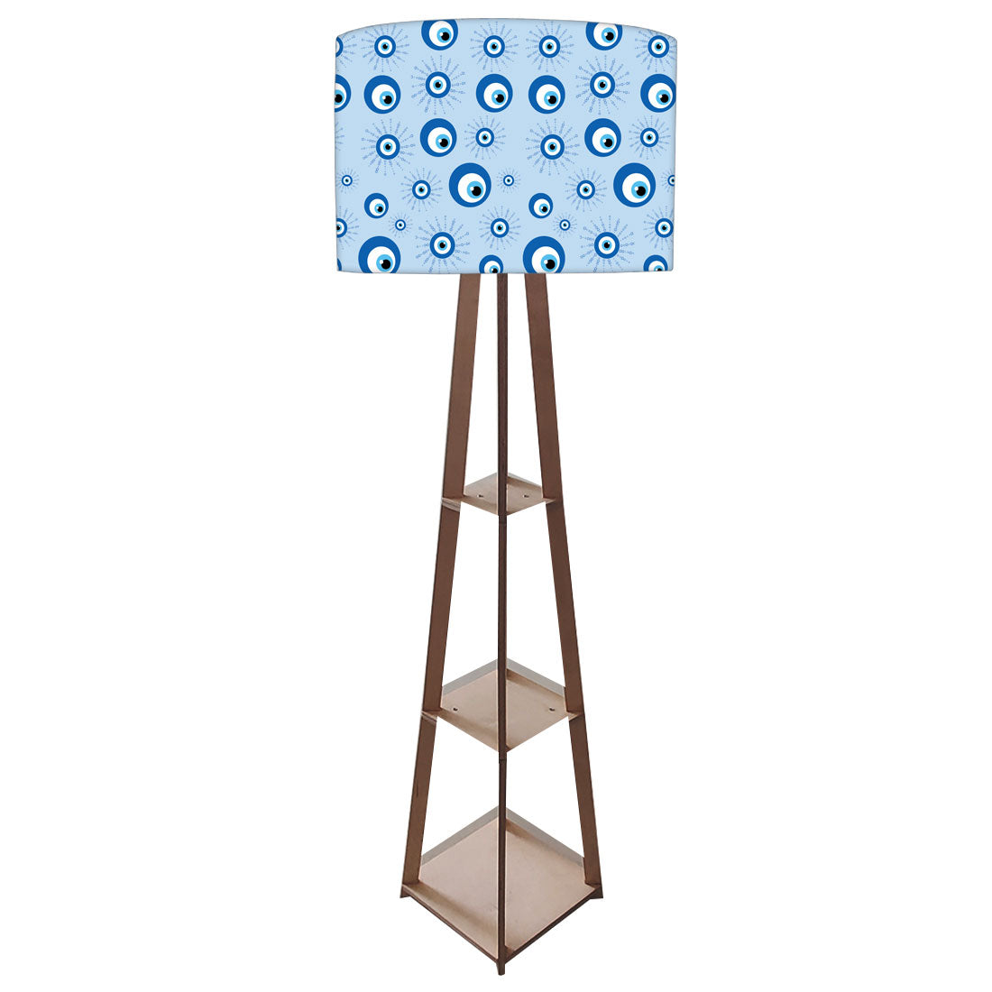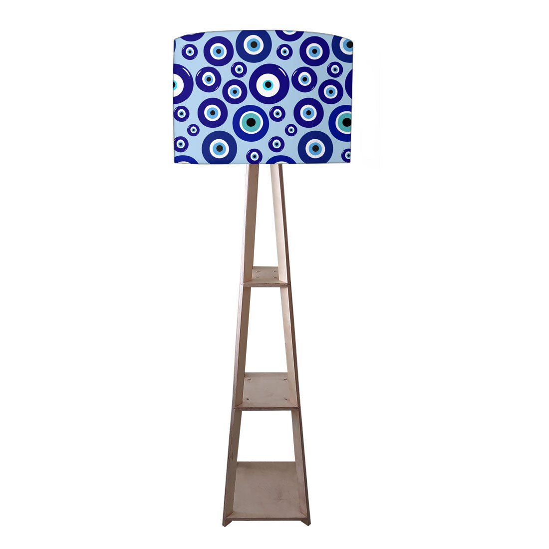 Designer Wooden Tripod Floor Lamp with Shelf for Living Room - Evil Eye Protector