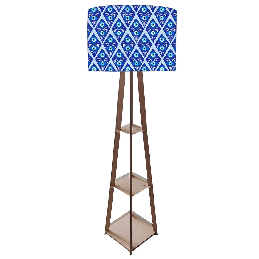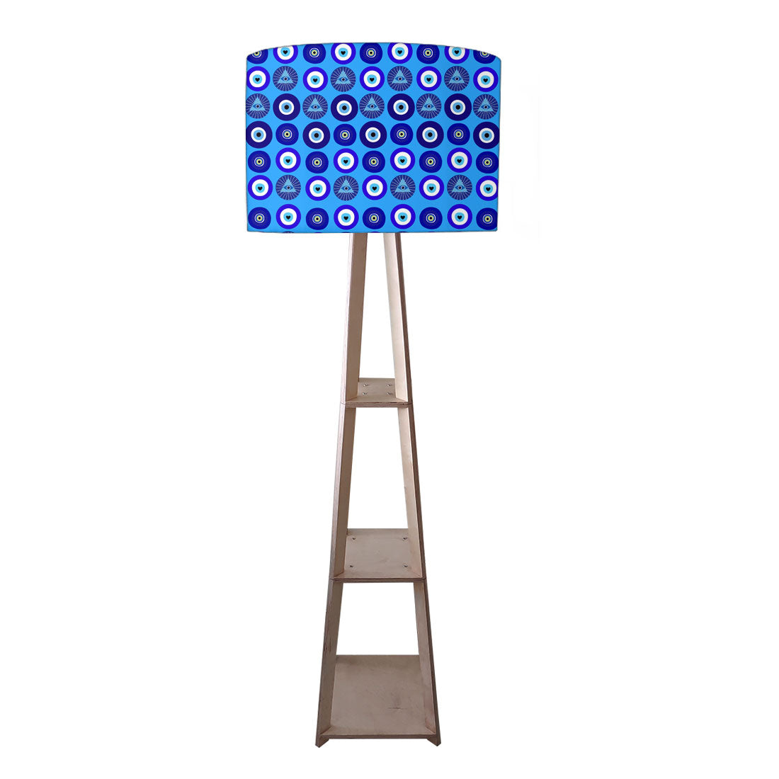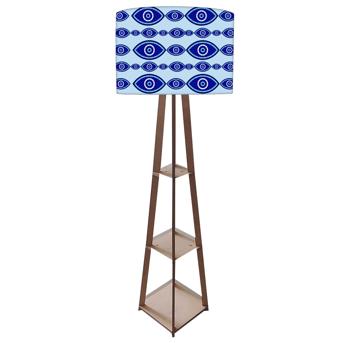 Wooden Tripod Floor Lamp with Shelf for Bedroom Living Room Decor - Evil Eye Protector