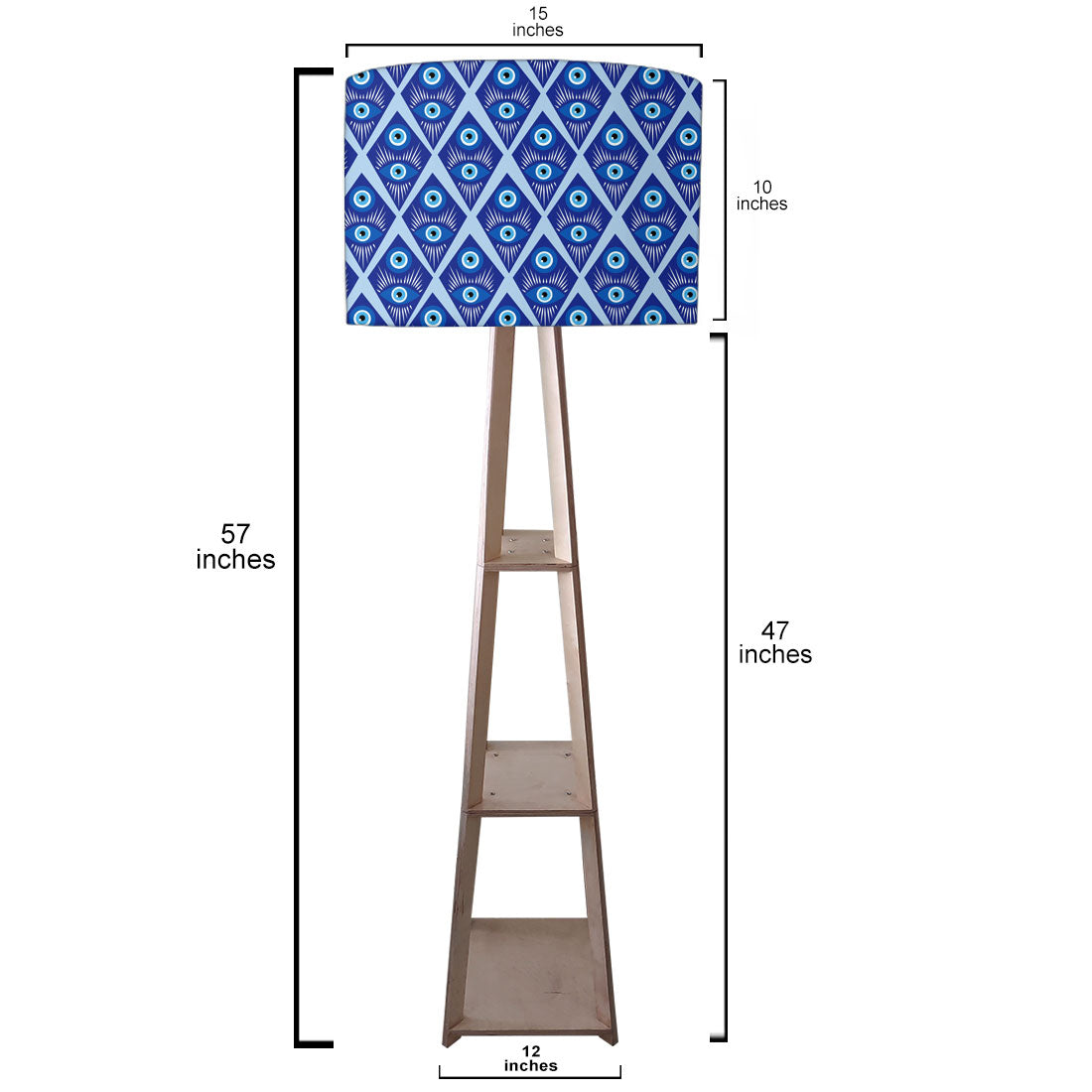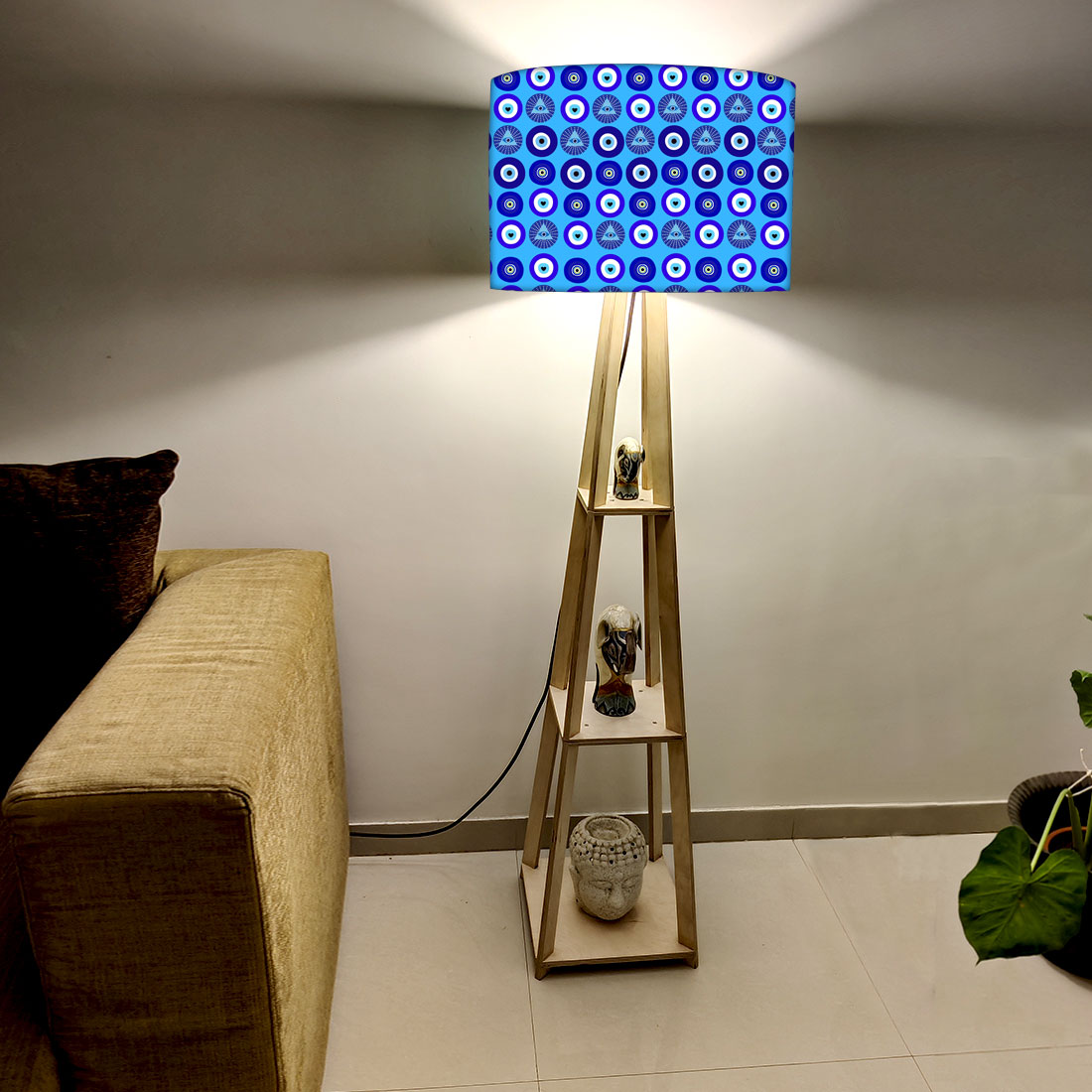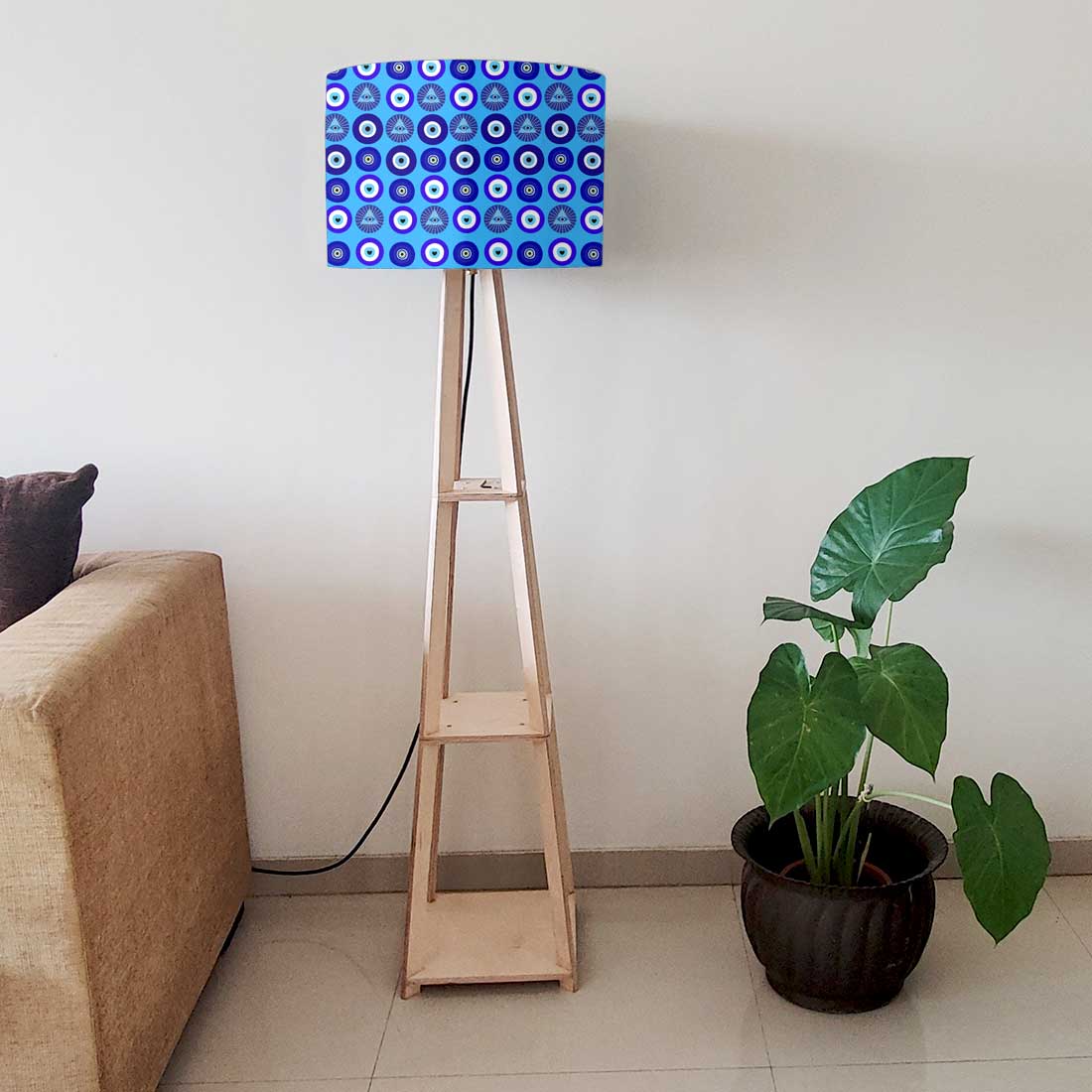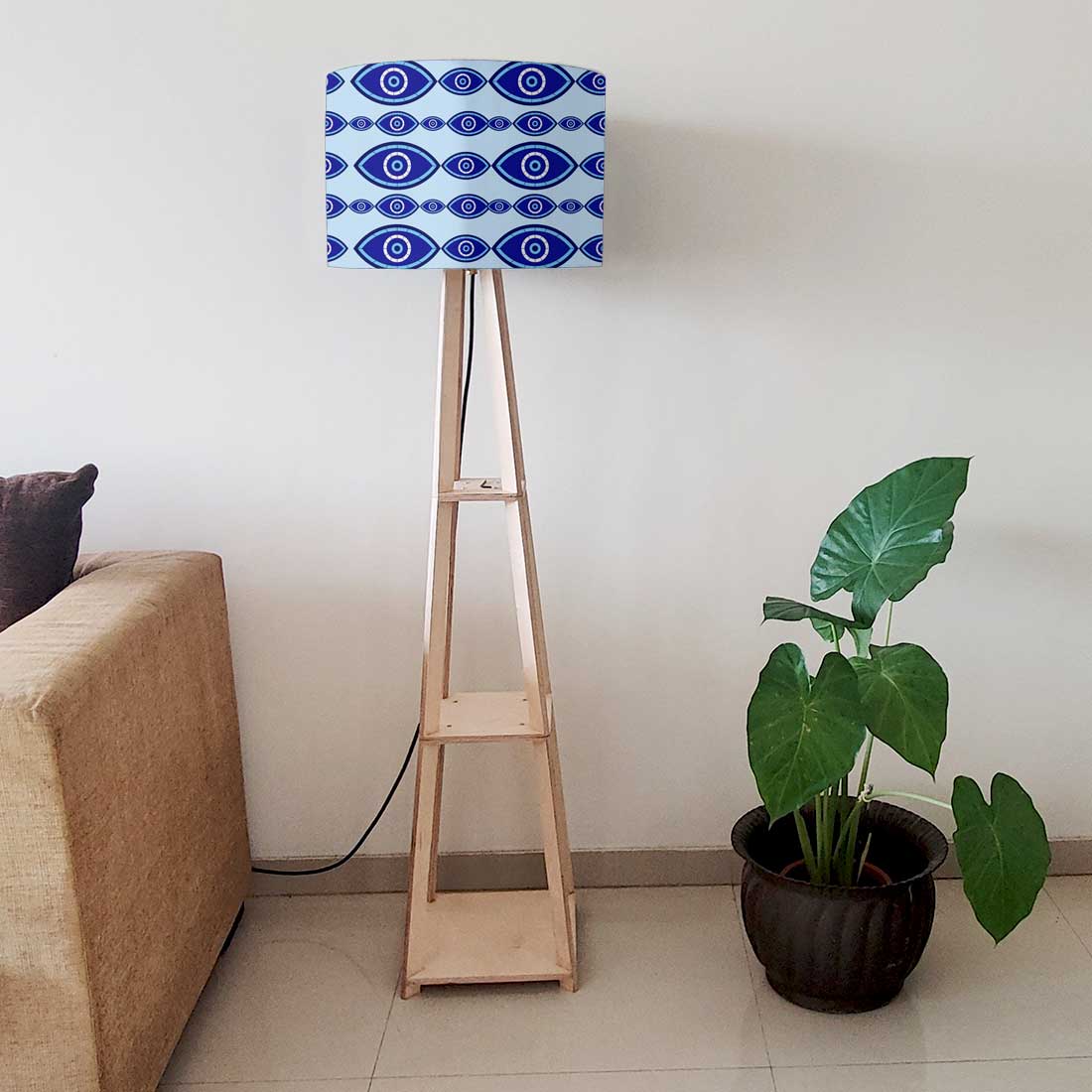 Wooden Tripod Floor Lamp with Shelf for Bedroom Living Room Decor - Evil Eye Protector