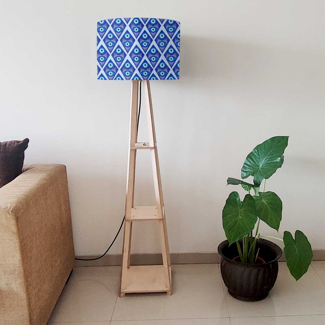 To thwart the evil eye, the Turkish people created Nazar Bomcuk Charm, Nutcase has now adapted these designs in Wooden Tripod Floor Lamp, to repel the evil spirits and increase your home's design quotient.. Nutcase Wooden Tripod Flowers Floor Lamps with Shelves is more than just a furniture piece, it is an art that will add color as well as light to your home. This European Birch wood floor lamp is ideal for bedrooms as well as living room. Made in India with high quality materials. It is easy to assemble and available in 100s of designs.