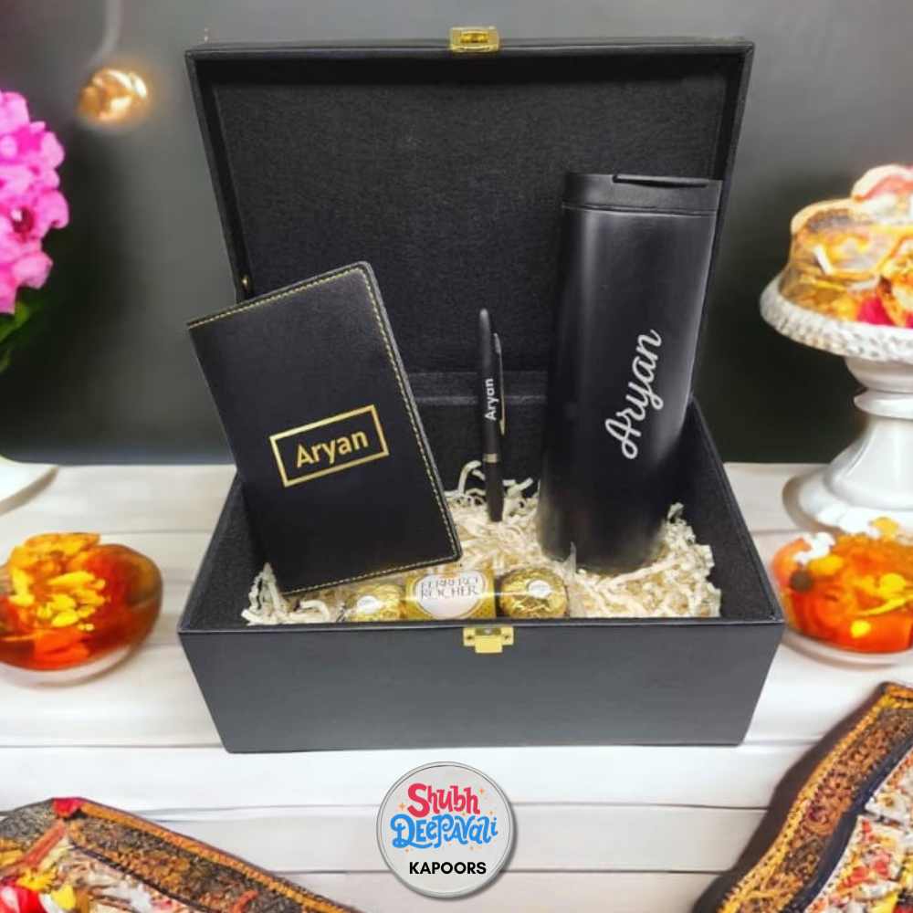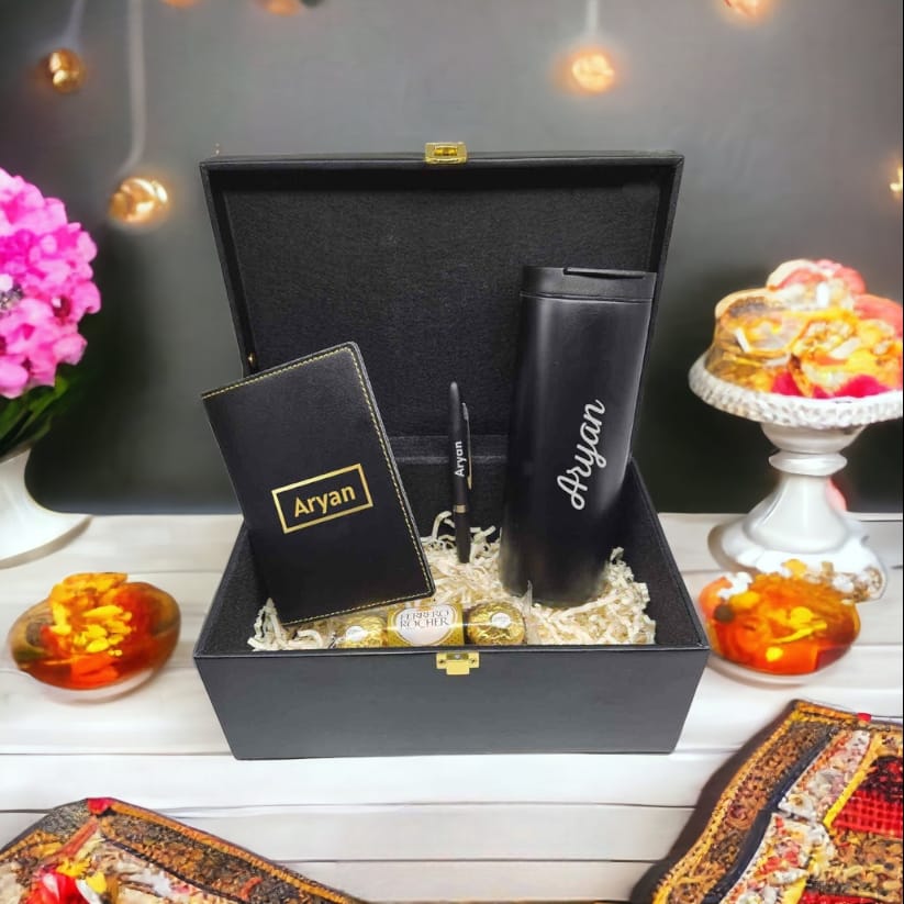• Diwali Gift Box Includes: Custom Coffee Tumber, Personalized Pen, Passport Cover - and not to forget delicious Ferrero Rocher chocolates