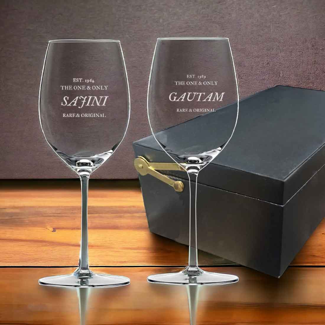 • PERSONALIZED WINE GLASSES: Simply click on PERSONALIZE IT to add name . This Engraved Wine Glass comes in classic engraving a high-quality design that will last for years.