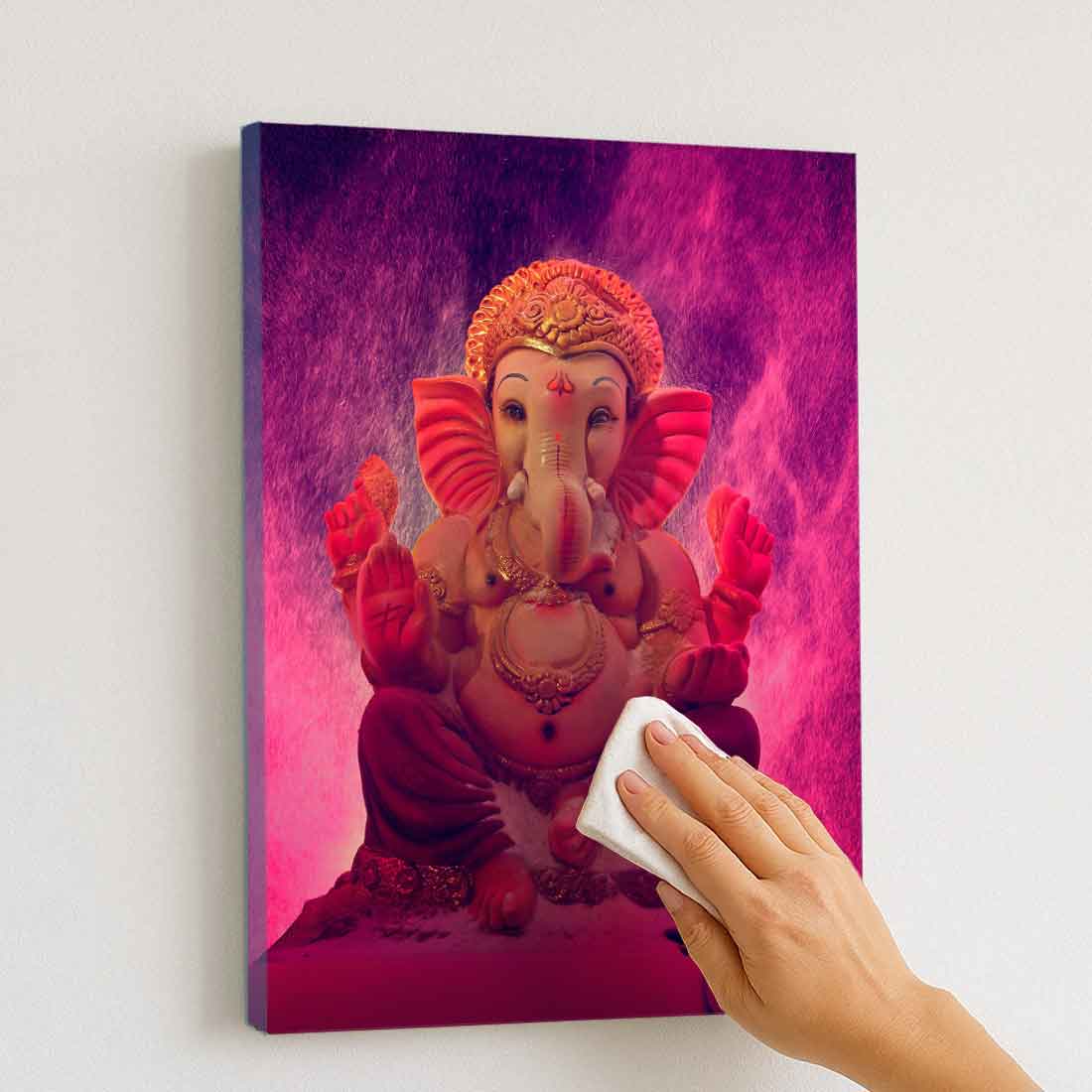 • Divine Illuminated Ganesha Photo Frame: Features a premium divine artwork of Lord Ganesha, illuminated with soft LED lighting for a serene spiritual ambiance