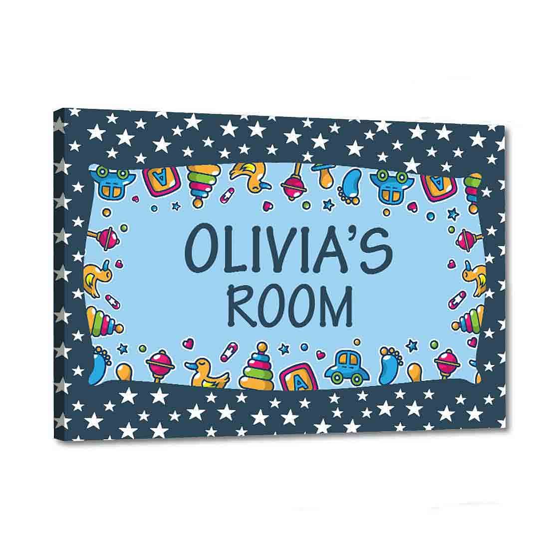 Custom-Made Children's Door Name Plate - Stars & Toy.