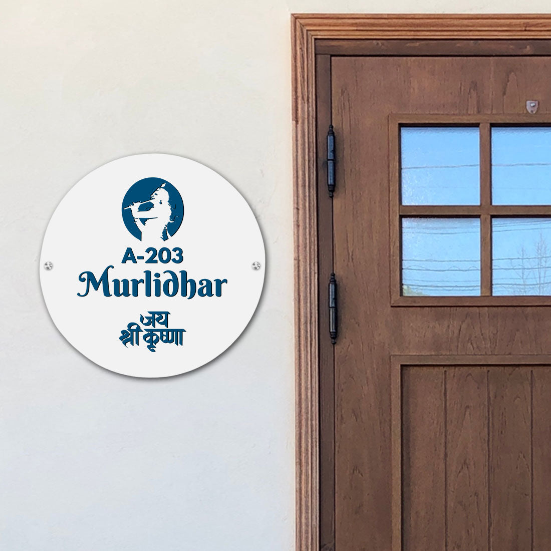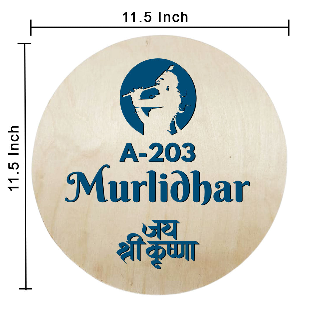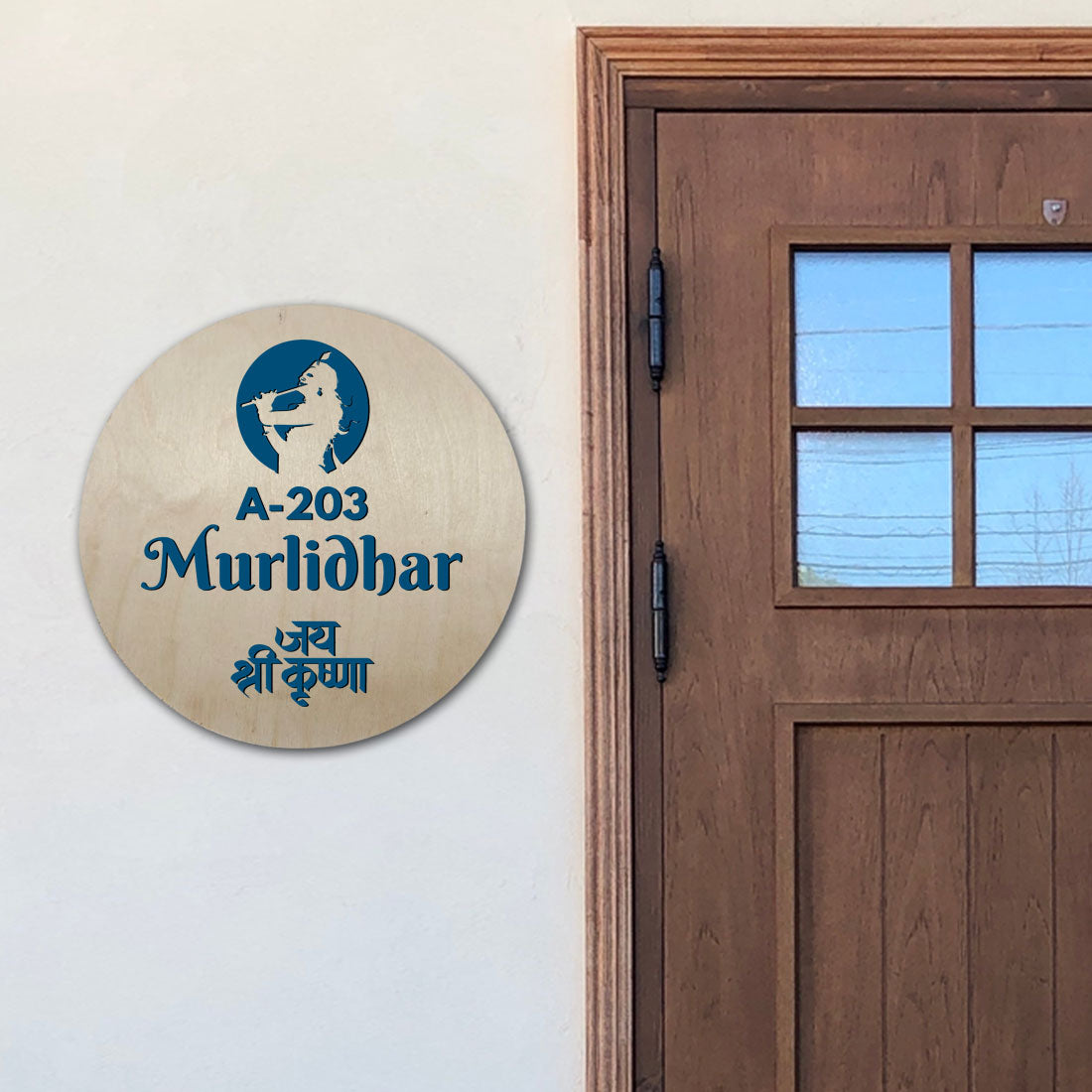 Krishna Name Plate for Home Round Nameplate with Shri Krishna - Available in Wood and Acrylic