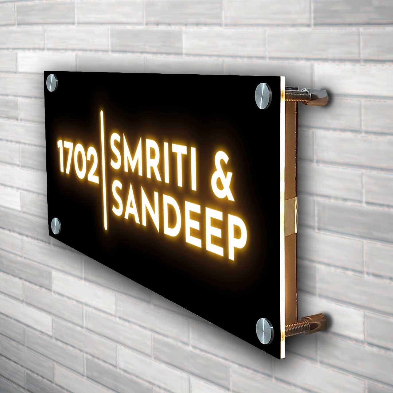 Your premium LED Name Plate will come along with Stainless Steel Studs for easy fixing.