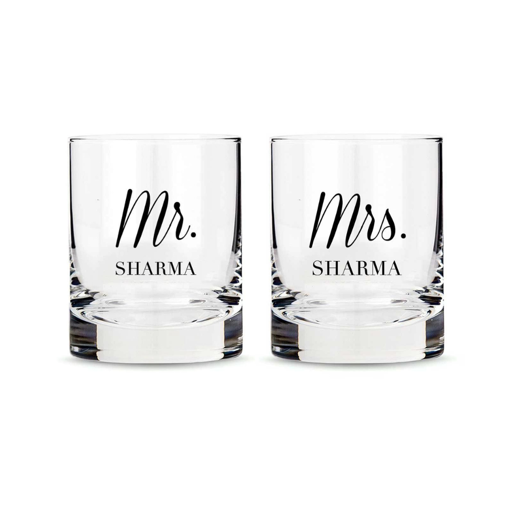 Personalized Mr and Mrs Whiskey Glasses Set of 2 for Couples Anniversary gifts